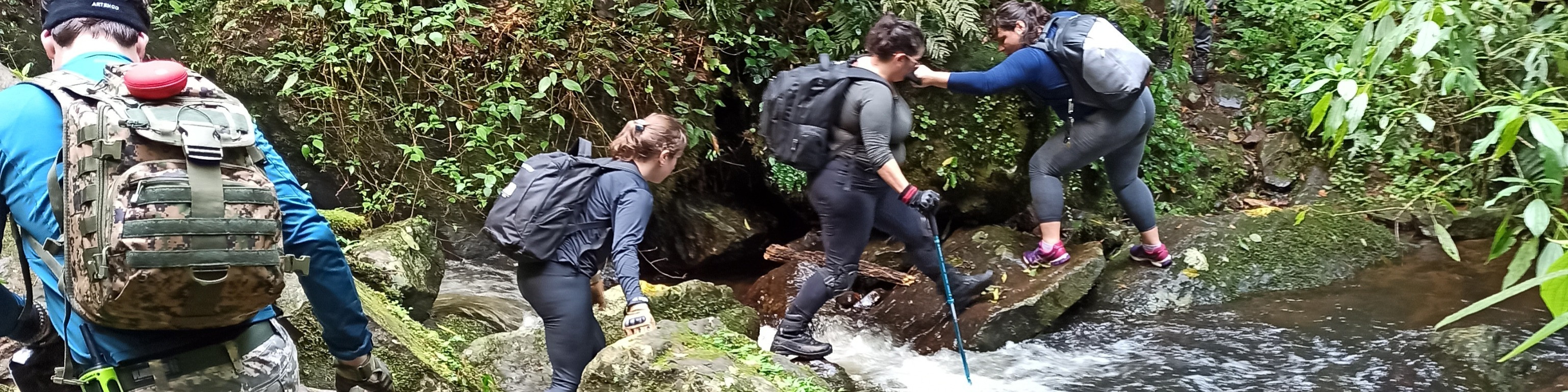 Pelo caminho, encontramos uma jararaca, girinos, um bugio (que não vimos, mas escutamos muito bem) e diversos pássaros da região. É bastante importante estar usando botas de caminhada (seu pé VAI molhar), ter um bastão de trekking, luvas e bastante água para beber. Indispensável o uso de repelente para mosquitos.