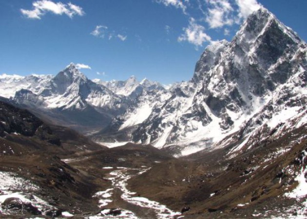 Às nossas costas ficava um grande rio de pedras e gelo, que descia das montanhas próximas, e havia sido transposto no dia anterior. À nossa frente, uma trilha inclinada, muito inclinada, marcava o começo do caminho que seguiríamos ao longo das próximas oito horas. Andar sobre a neve e o gelo, cruzar passagens estreitas com pedras soltas, passar por um elevado passo de montanha, com o ar já bastante rarefeito. No final do longo dia, apesar do cansaço e do frio, nada mais importava. Estávamos diante de um dos mais incríveis e belos gigantes de pedra da região. Cercada de montanhas mais elevadas, que ultrapassavam os 8.000 metros, o maciço com pouco menos de 7.000 metros, impressiona pela imponência e beleza. Os povos locais a chamam de Mãe, Ama Dablam, e a consideram a mais bela montanha do Himalaia. Estávamos no Himalaia. Mais alguns dias e estaríamos aos pés da montanha mais alta do planeta.