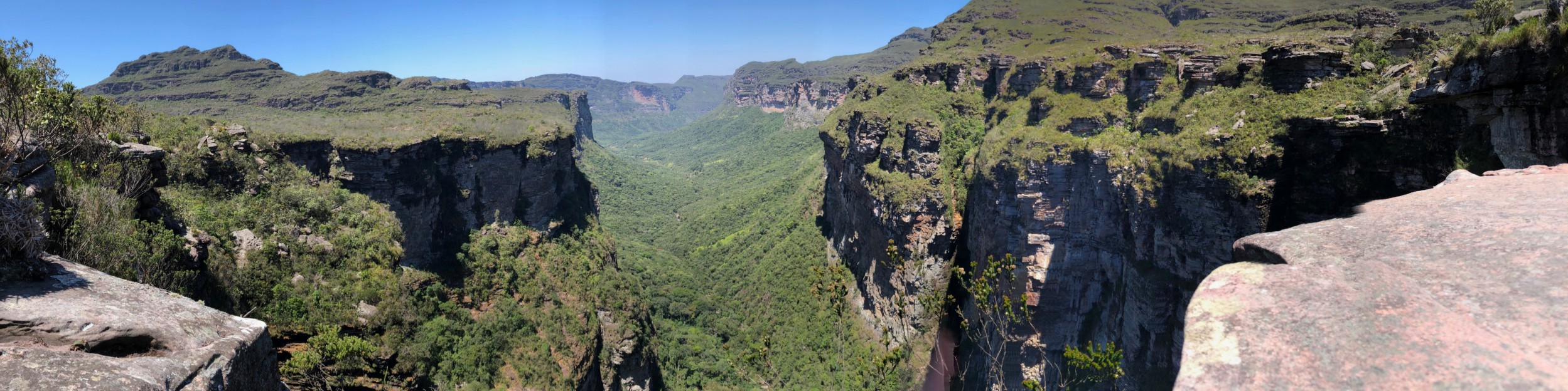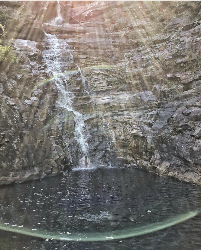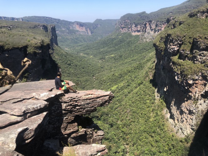Ao final da subida, decidimos parar para descansar, lanchar e reidratar. Após poucos minutos, seguimos viagem por uma descida bem leve e muito longa até chegar a uma nascente de água, que apesar do momento de seca que se encontrava a Chapada, estava ainda com um certo fluxo de água corrente, onde reabastecemos nossas garrafas e passamos praticamente 1hr bebendo água. Após de fato renovarmos nossa energia e agora com água a vontade, seguimos a trilha que se manteve com a mesma inclinação e intensidade por todo o trajeto até a cidade de Andaraí, onde chegamos já no finalzinho da tarde.