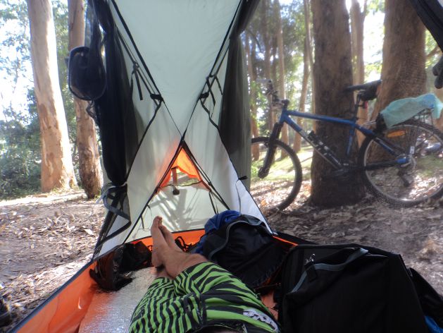 Já usei ela algumas vezes. Nesta viagem de bike e em alguns acampamentos e travessias, sendo que já tomei chuva forte com ela e segurou de boa. É para uma pessoa, autoportante e tem uma parada que eu gosto muito que é o fato das varetas se cruzarem duas vezes, no mesmo sistema da Cota 2 da Trilhas & Rumos, além disto ela tem duas portas e a altura interna é ótima para ficar sentado dentro. Ano passado paguei pouco mais de 210,00 dilmas nela...estou satisfeito.