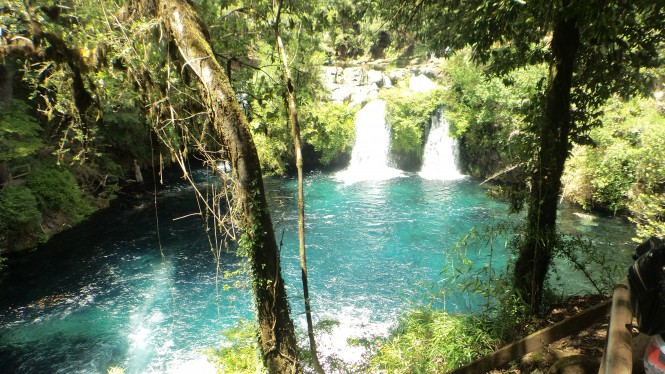 É um conjunto de quedas d'águas que fica a cerca de 20km de Pucón. O local é de uma beleza fantástica mesmo. Junto das cachoeiras está a Laguna Azul, um local com uma pequena queda d'água e que tem uma coloração esmeralda de "cair os butáis do bolso".