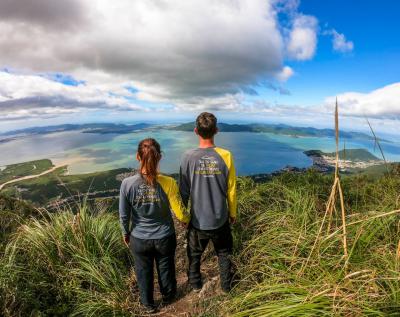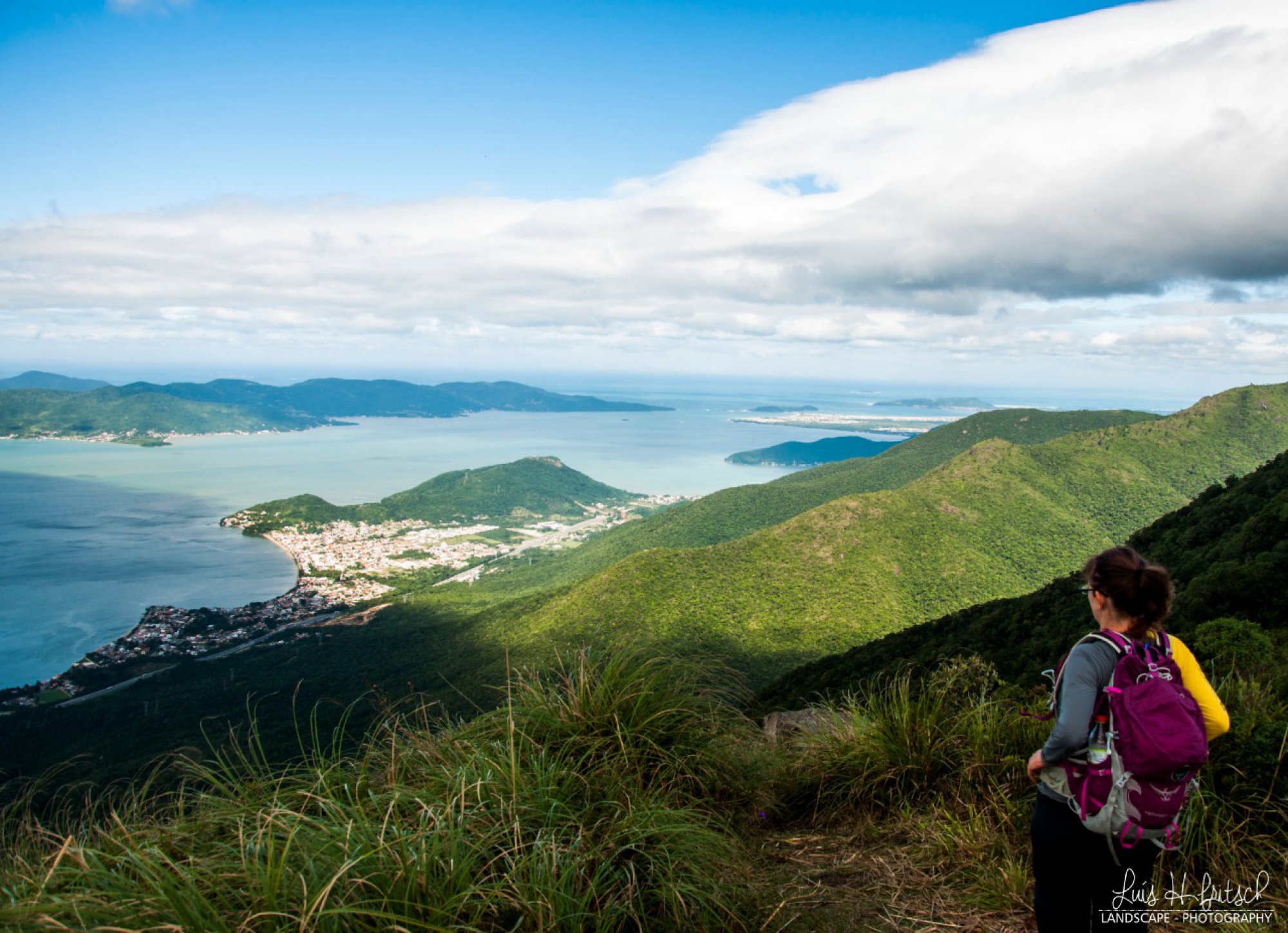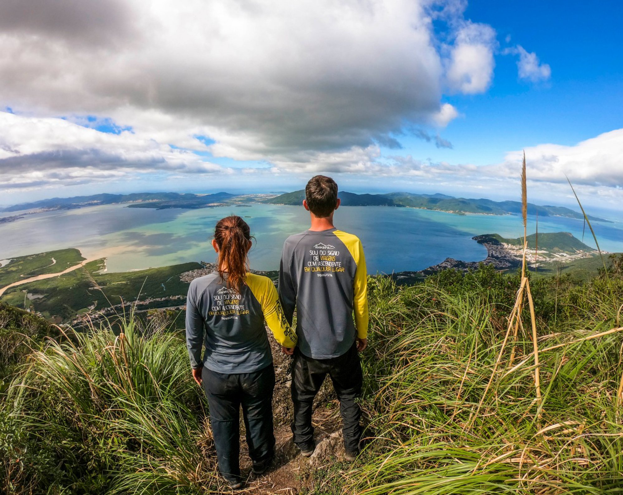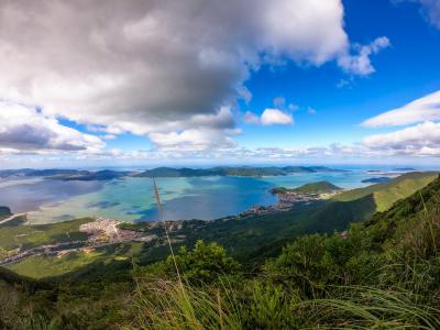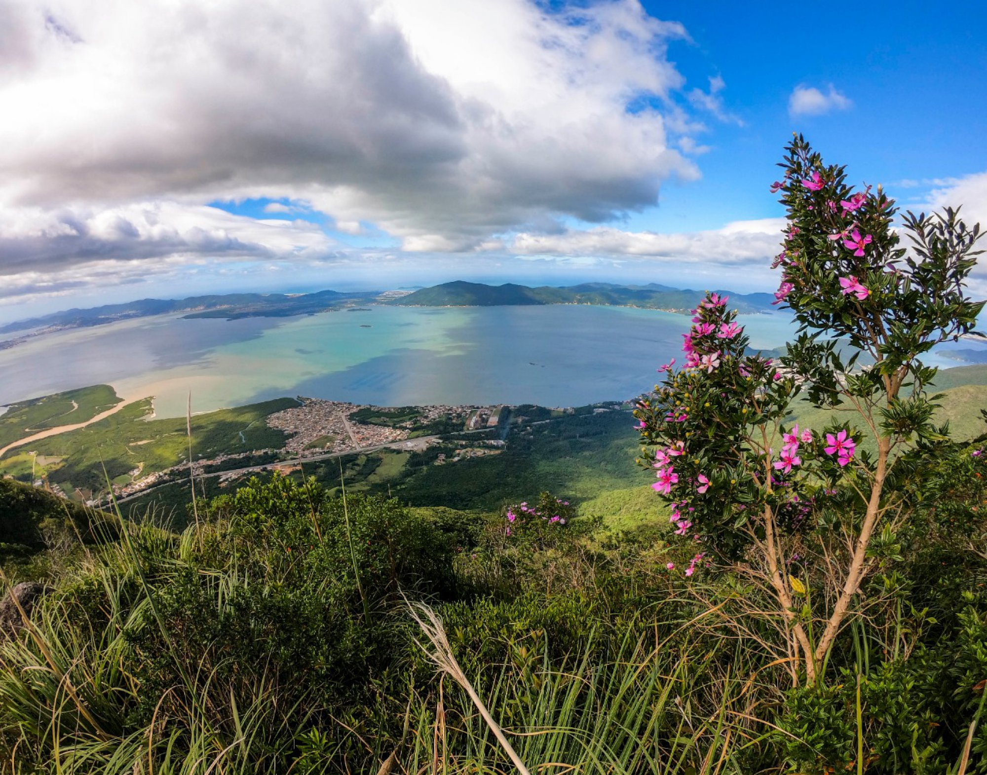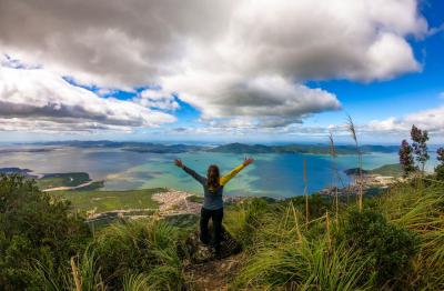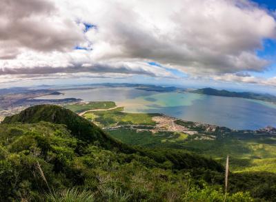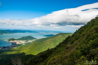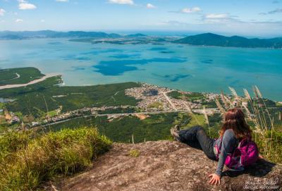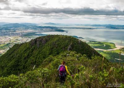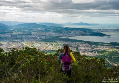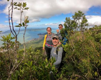 Subindo a Via 3 até o topo para contemplar a bela vista da Ilha de Florianópolis.