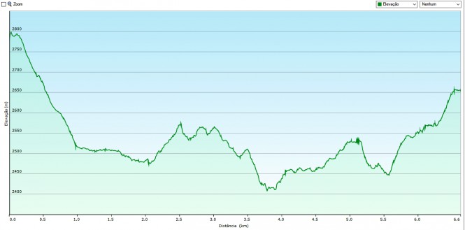 O início deste trecho da travessia é uma descida forte, com muita pedra solta, que exige bastante atenção e cuidado, pois em menos de 1 km se desce mais de 300 metros! Qualquer descuido pode resultar em queda. Nessa hora os bastões de trekking ajudam muito.