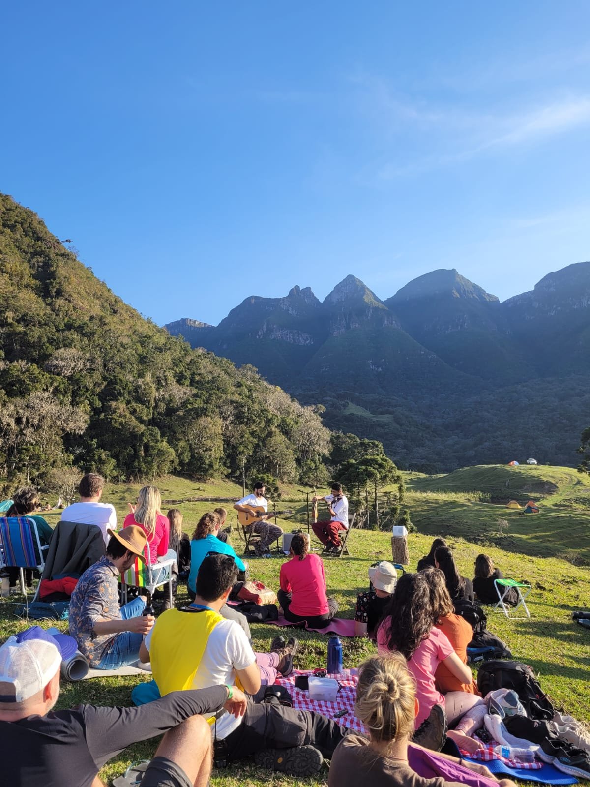 Por volta das 16 horas, a galera toda já estava reunida na grama para curtir o som do Bernardo, tendo como cenário o cair do sol atrás das montanhas. Foi mais uma vez, uma apresentação belíssima, onde a galera cantou junto os hits das montanhas com o Bernardo.