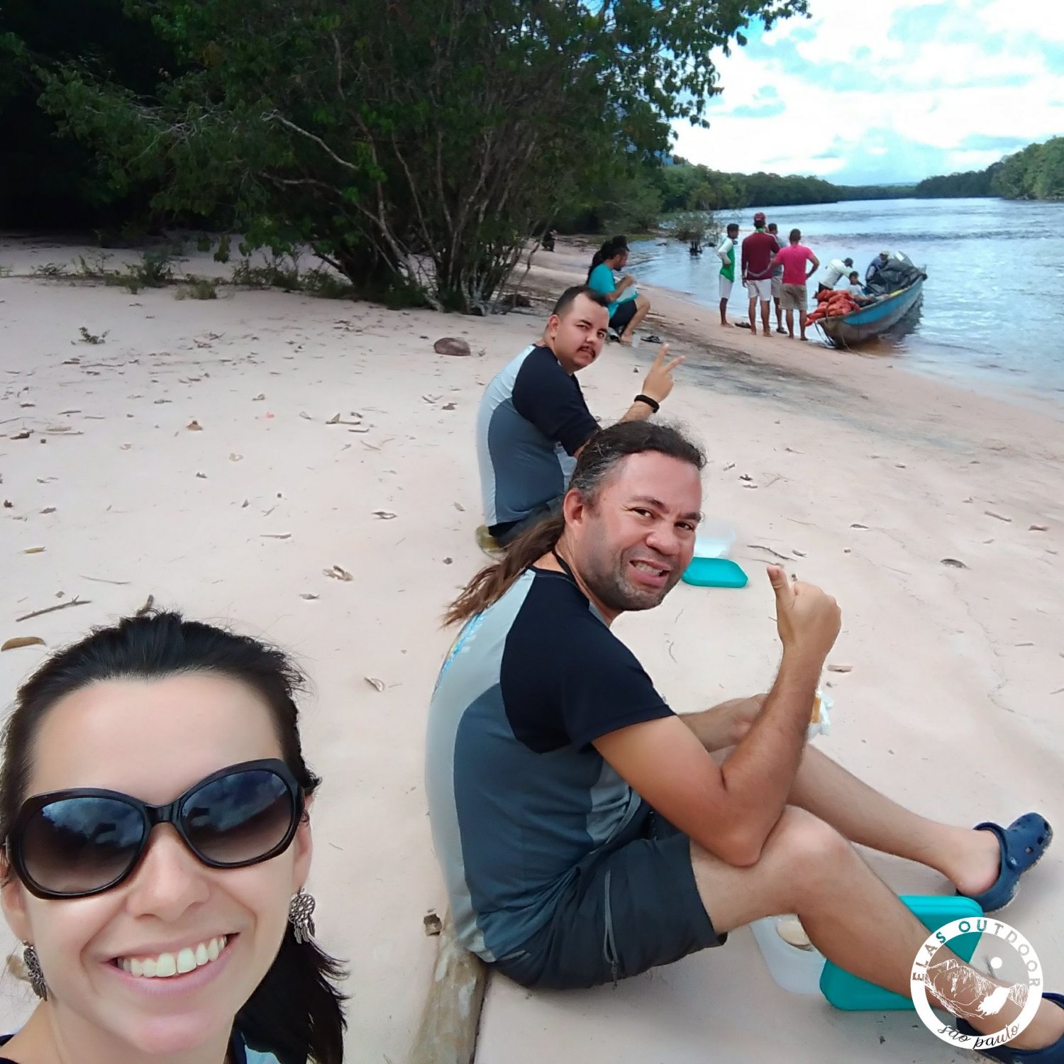 No dia seguinte (03.01.18) que chegamos no Parque Nacional Canaima, eu estava ansiosa e feliz junto dos meus amigos Tiago e Santana). E assim, partimos rumo ao majestoso em sua plenitude Salto Angel, numa embarcação de madeira motorizada (canoa rústica) comandada por nativos (indígenas).