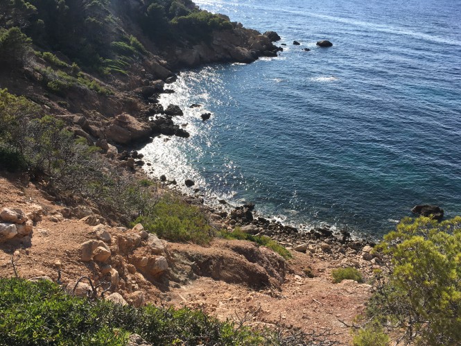 Na continuação era o trajeto de maior exposição e ao contrário demorou um pouco para achar o caminho pelas rochas, mas sem maiores complicações. Estiquei até uma praia deserta (Cala en Basset) e depois retornei a Sant Elm, onde curti um pouco na praia antes de ir para o carro. Foram um 10km de trilha em aprox. 4h.