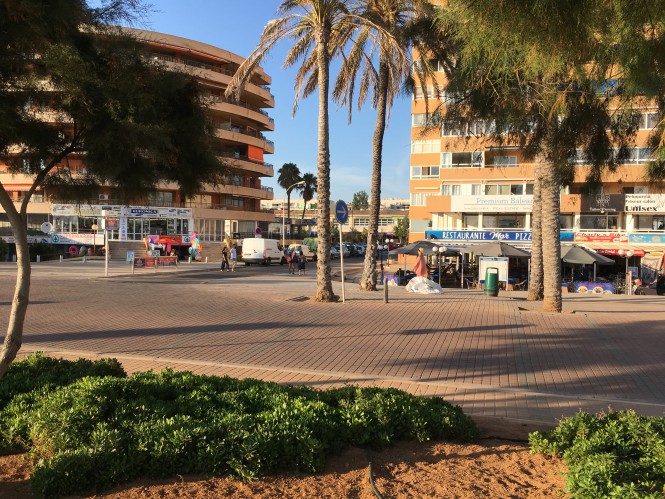 Depois de treinar um tempo e pegar umas dicas, na hora de ir embora olhei no mapa e resolvi fazer uma caminhada de improviso e em área urbana, diferente de trilhas, e resolvi ir para a Praia de Palma, destino muito procurado por turistas da Europa. Como a praia tem uma longa extensão de areia, lá fui eu no improviso (e olha que gosto e costumo verificar um monte de coisas antes de ir a um lugar), colocando o início da praia no GPS.