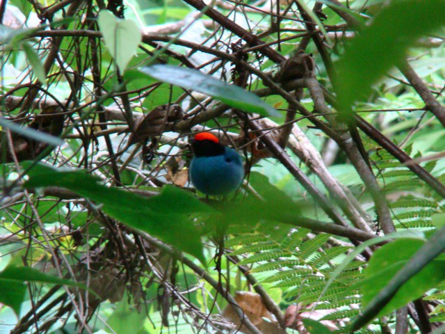 O acesso ao costão fica à esquerda na bifurcação que fica logo após a piscina natural. Seguindo à direita, retorna-se à trilha original e andando praticamente só pelo meio do mato, quase sem ouvir o som do mar passamos por algumas casas fincadas na mata bem como por alguns pássaros muito simpáticos que chamaram a atenção por seu canto e sua beleza.