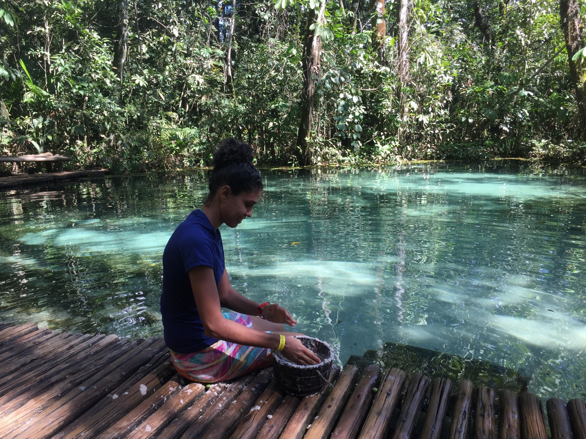 Depois segui-se por outra trilha que dar em um rio, onde tem um área chamada de prainha, com águas mais tranquilas para crianças e pessoas em geral, como também tem áreas para os mais aventureiros, com massagens e um local onde se pode dar saltos e mergulhos mais emocionantes. Tudo orientado e indicado pelo guia.