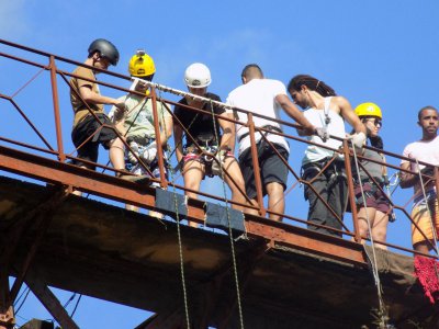 Rapel fica localizado em uma antiga ponte ferroviária em Miguel Pereira, ponte extremamente rústica e com um ótimo visual de rapel e fotos.