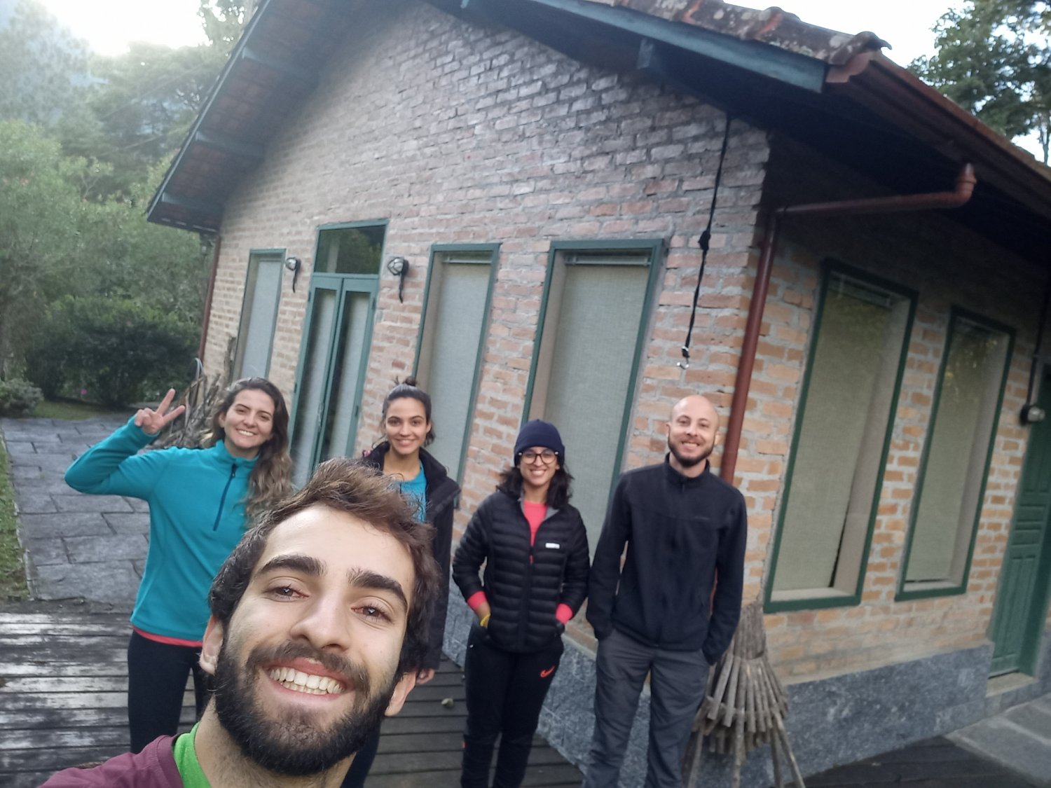 A viagem foi para a região do Parque Nacional de Itatiaia, e ao longo do feriado iríamos escalar no parque e nos arredores. No primeiro dia o plano era visitar a Pedra do Picu, um monolito de 120 metros de altura que reina imponente na Serra da Mantiqueira próximo à tríplice fronteira RJ/MG/SP, no município de Itamonte, em Minas Gerais, cidade na qual ficamos baseados, numa casa muito aconchegante que o Bernardo conseguiu pra gente. Chegamos na casa na noite do dia anterior, e não tínhamos ideia de como o vilarejo era bonito e agradável, fato que tomamos conhecimento no dia seguinte quando saímos logo cedo, a pé mesmo, para pegar a trilha do Picu. Durante o café da manhã já tivemos um spoiler ao olhar pela janela e ver a montanha se destacando longe sobre a floresta.