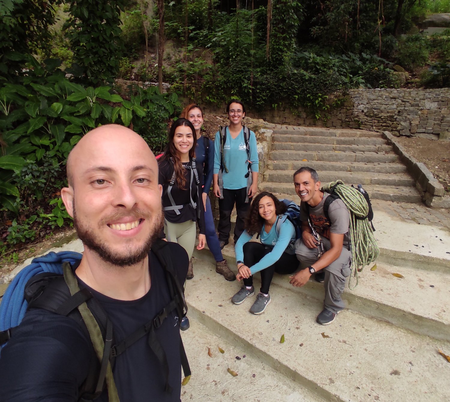 Finalmente, depois de 4 horas escalando, 2 horas rapelando e 15 minutos de trilha de volta até a entrada do parque, chegamos todos bem, apesar do natural cansaço. Tivemos a cordada dos enfermos, composta por mim e pela Raquel Fedrizzi, ambos com os pés ainda lesionados, a cordada feminina da Luíza e da Raquel Alves, que voaram pedra acima, e o Alessandro junto com a Suellen que abriram caminho nessa parede gigante que muitas vezes demandava sair de um grampo sem saber onde estaria o próximo.