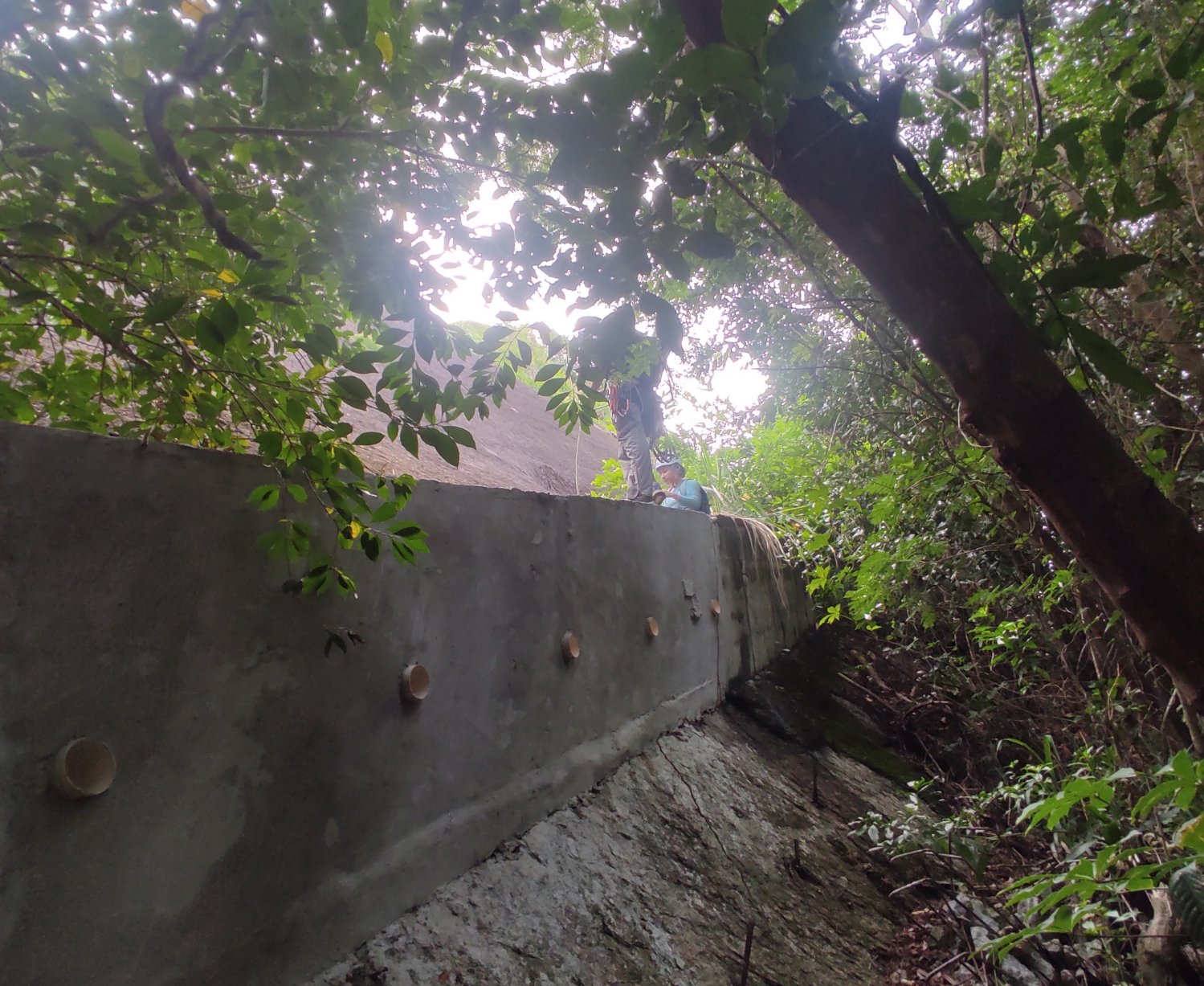 Já conhecia ela de nome e cheguei até a cogitá-la, mas duvidei das condições dos grampos. Agora com essa nova sugestão e com a informação de que ela aparentemente estava ok, resolvi investigar e tentar encontrar a base. Alguns minutos varando mato no parque e localizei as primeiras proteções dela, e deu pra ver que estavam em boas condições de fato. Sem perder tempo já avisei ao restante do pessoal e a ideia de entrarmos nela com 3 cordadas tomou forma.