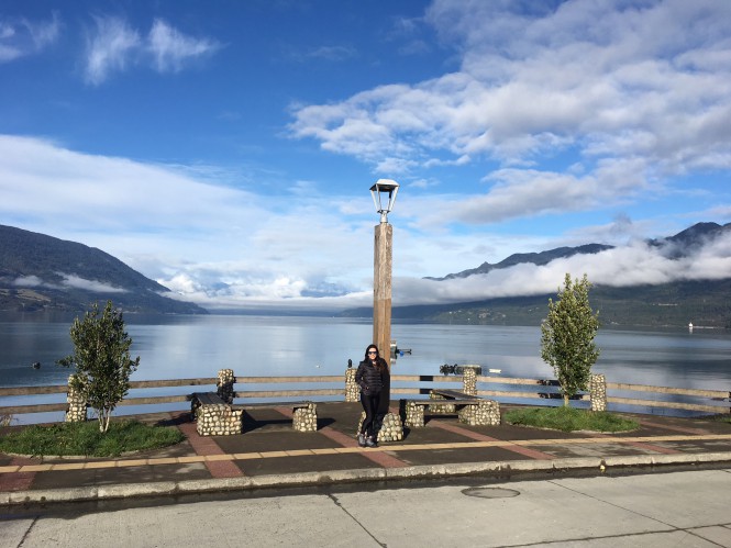 Qualquer raio de sol que entrava no carro era um alívio para o frio que ultrapassava a jaqueta de plumas e o flleece. Foram aproximadamente 80 km entre Puerto Varas até Cochamó, passando por Ensenada e Rálun. A paisagem é sublime, os trechos de florestas que margeiam a estrada são lindos, e quase sempre é possível ver ou ser observado por algum vulcão.