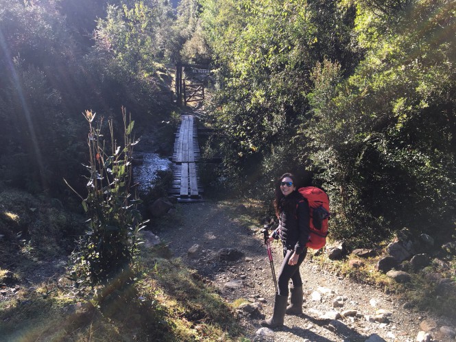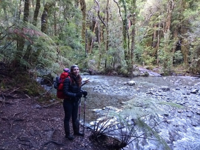 A trilha é linda, com algumas marcações com fita de cor laranja em algumas árvores, não há muita dificuldade além dos trechos de charcos e lama, que em alguns momentos exigem mais esforço físico, especialmente quando a lama atinge metade da perna. Por um erro de escolha, já próximo ao camping consegui enfiar o pé em uma parte mais funda de um charco e a lama ultrapassou os limites da bota, pouco abaixo do joelho, mas isso não diminuiu em nada a beleza da trilha, pelo contrário, me fez sorrir.