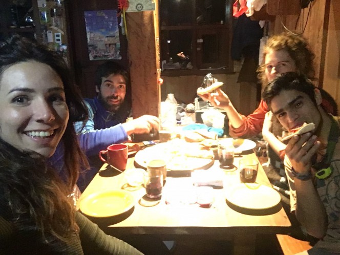 Em parte eu estava meio decepcionada comigo mesma, por ter trocado a minha primeira noite sob céu estrelado em camping aberto, por uma noite em refugio, mas o frio que eu sentia logo me fez abandonar o arrependimento. Voltando para o refugio, o Mono e a Jupiter sugeriram fazer pizza, e eu mal poderia acreditar que nem nos meus melhores sonhos poderia viver aquele momento.