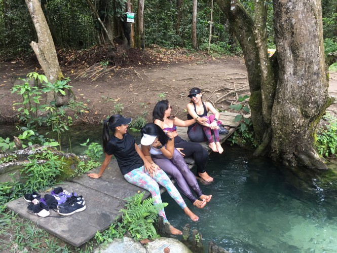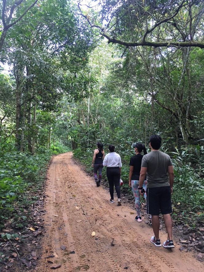 Eu, André, Barbara, Amanda, Martinha e Eduardo chegamos chegamos ao nosso destino perto das 8h. Que bela surpresa. Super perto de Recife, em menos de 40 min chegamos a um pedacinho do Paraíso. Águas cristalinas e muita mata atlântica para fazer trilha. Estacionamos o carro, e logo iniciamos uma caminhada bem leve, foram 4,93km, em 1h30, com ganho de elevação de 52m, elevação máx. 125m e elevação mín. 50m, que vocês podem verificar aqui: https://pt.wikiloc.com/trilhas-caminhada/trilha-proxima-ao-bar-do-paraiso-aldeia-pe-28018807
