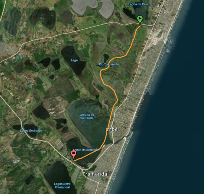 Remada partindo da Marina Rio Tramandaí na Estrada do Mar até o Camping Lagoa e Mar. Realizada em Dezembro de 2019 com @casiojb