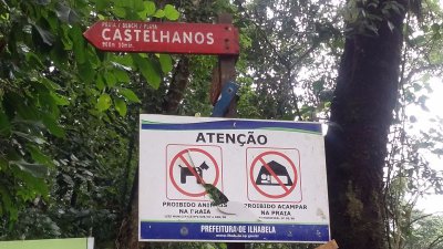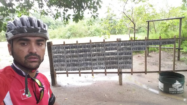 Essas são placas encontradas na estrada, estão pregadas numa cerca logo na primeira casa depois da travessia do rio.