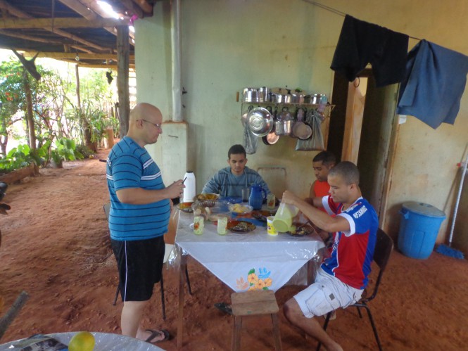 As 07:00 da manhã o grupo estava na mesa saboreando o belo café da manhã preparado pela esposa de Orlando. Pães, aimpim, sucos, biscoitos, variedades de alimentos estavam à disposição para encarar a trilha do dia.