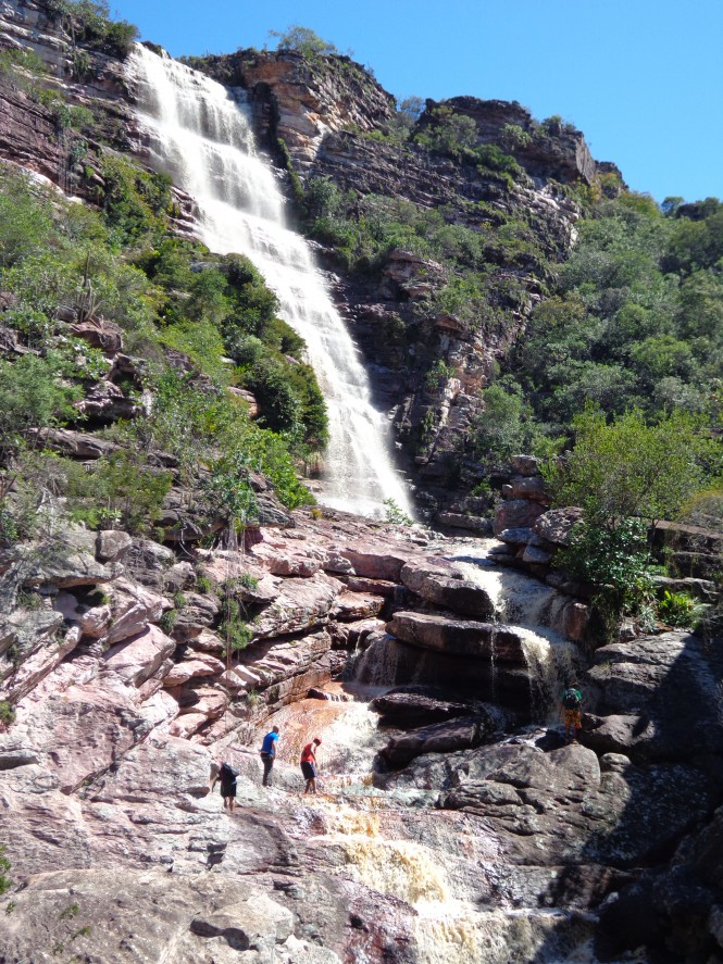 Imagem 08 – Travessia da cascata. Trilha da Cachoeira do Bom Jardim.. Itaetê, Bahia, 2015.