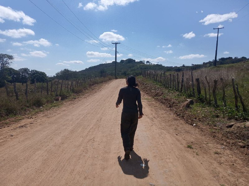 Imagem 03 - Graziela caminhando na estrada vicinal de acesso a trilha. Muritiba, Bahia, 2021
