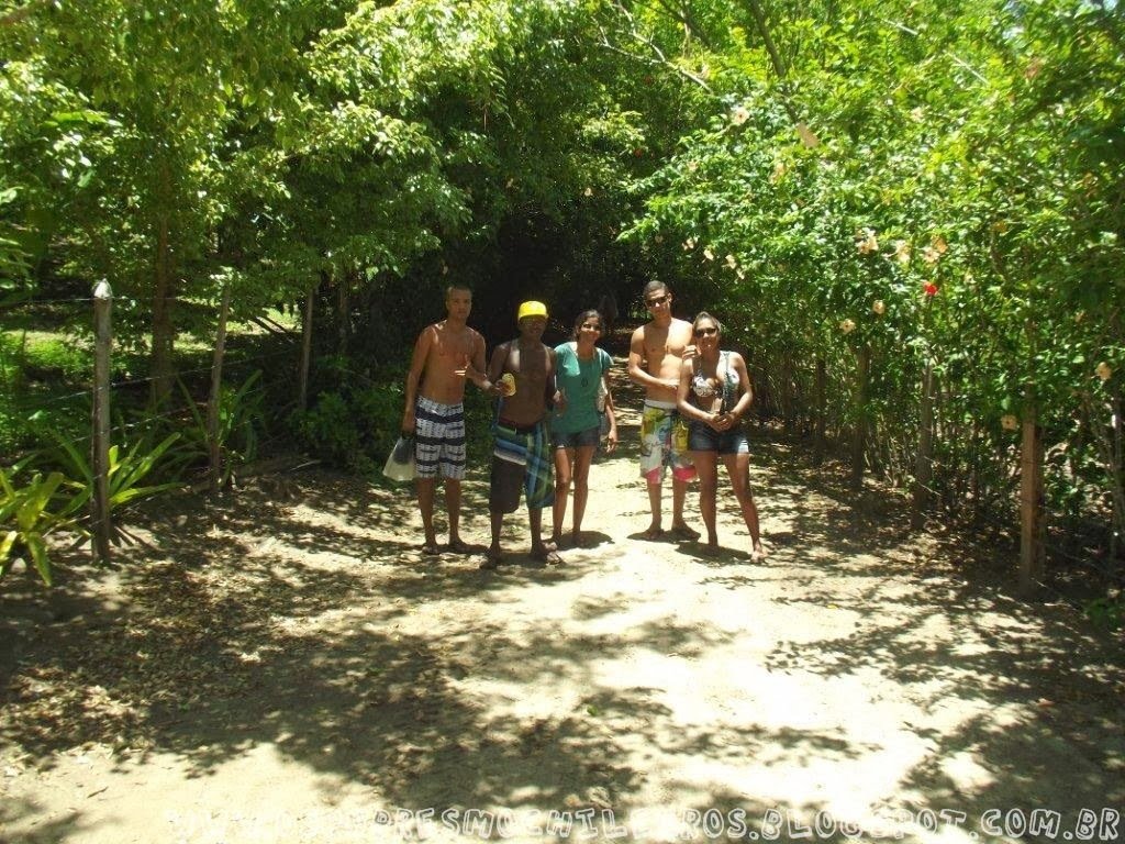 Imagem 02 - Da Esq. p/ Dir.: Fafau, Diogo, Graziela, Jean, Sendy no "Túnel" de acesso a Praia de Bainema. Ilha de Boipeba, Cairu BA, 2013.