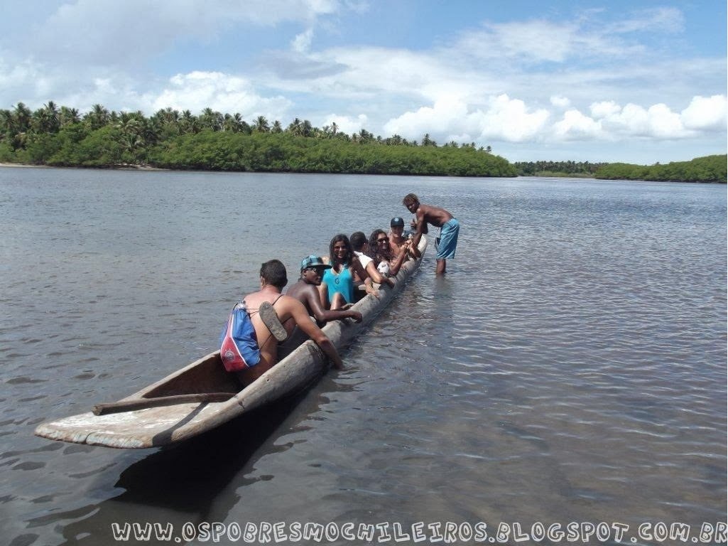 No final da trilha do manguezal nos encontramos com uma larga foz do Rio Catu. Para se chegar na praia da Ponta dos Castelhanos, que está alguns metros da margem oposta do rio, é necessário uma canoa (ou pequeno barco). Como existem algumas pessoas que fazem esse percurso, alguns canoeiros já ficam aguardando a chegada para fazer essa travessia. No nosso caso não foi diferente, ao chegamos na margem do rio, um rapaz se aproximou com a canoa e cobrou R$ 5,00 para atravessar todos até a outra margem.
