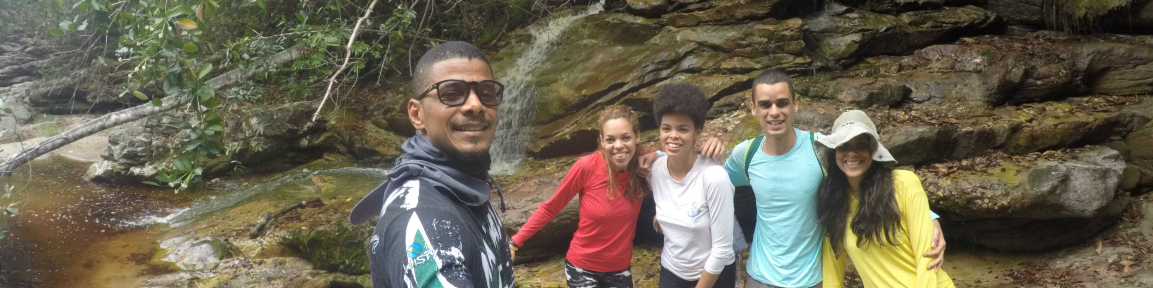 Imagem 14 – Rose, Alex, Camila, Fael, Graziela. Cachoeira do Pai Inácio. Palmeiras, Bahia, 2018.