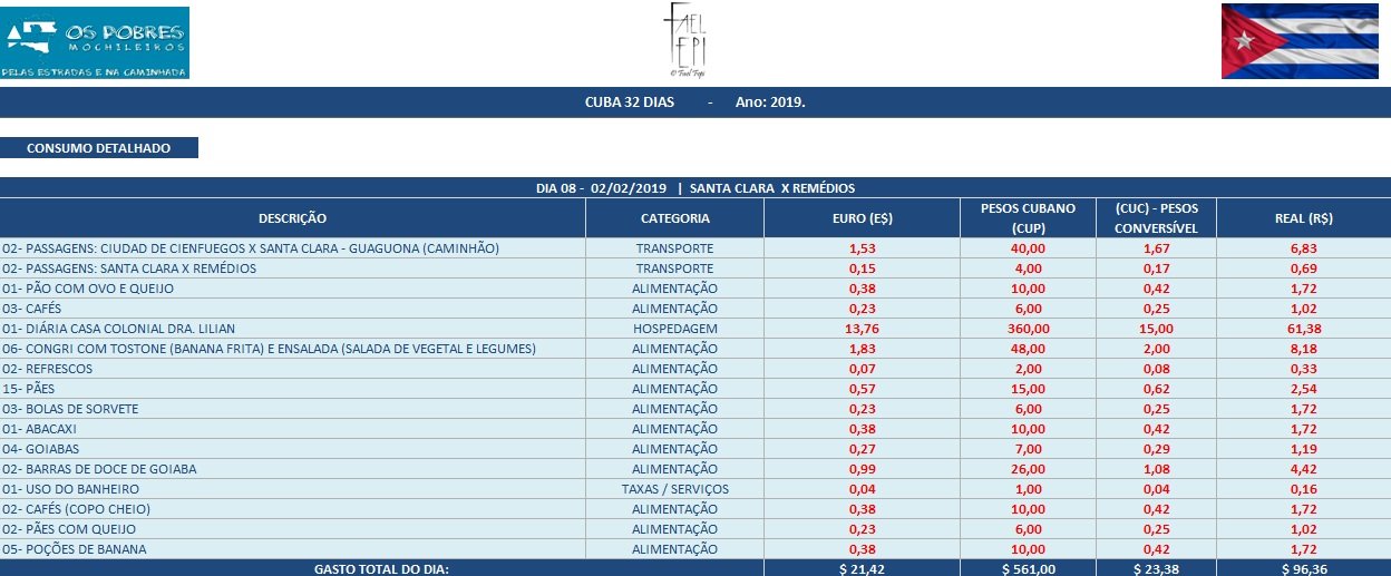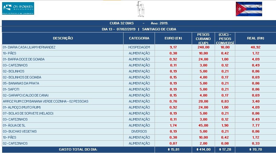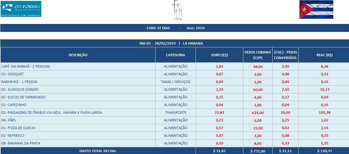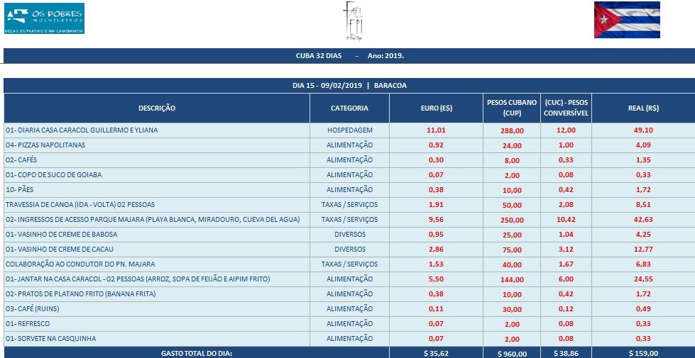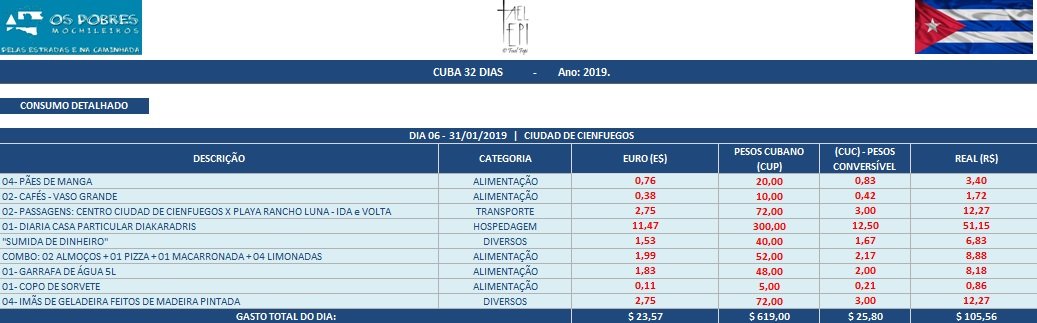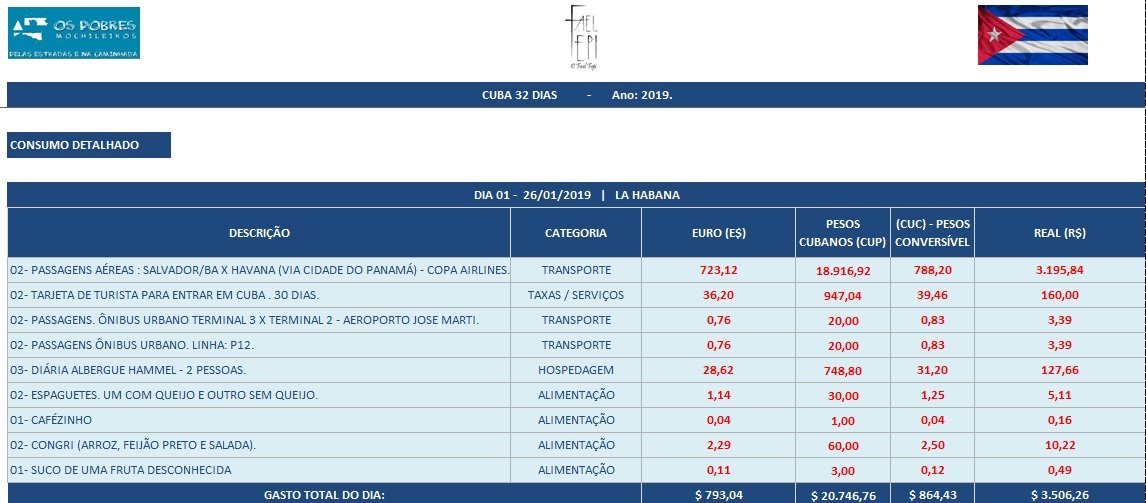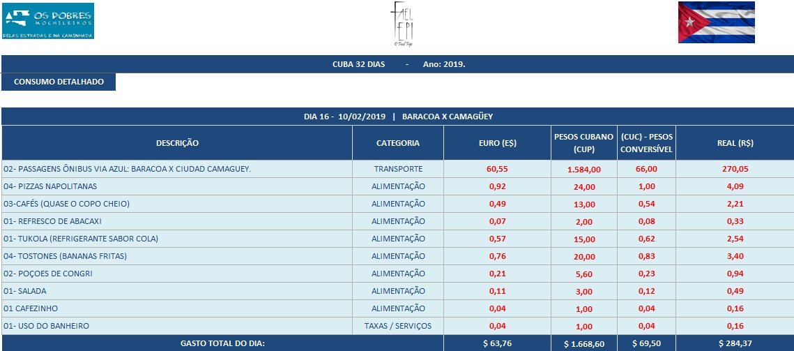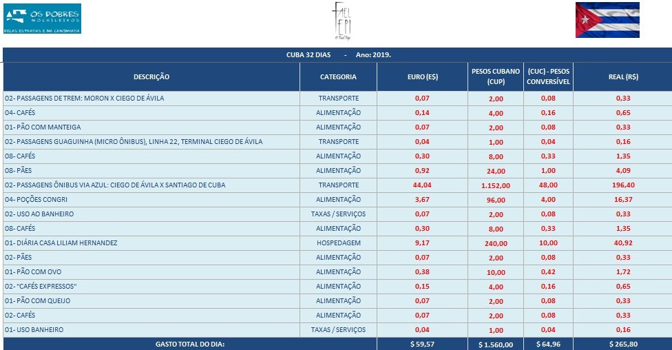 MOCHILÃO CUBA - DIA 01 AO DIA 16