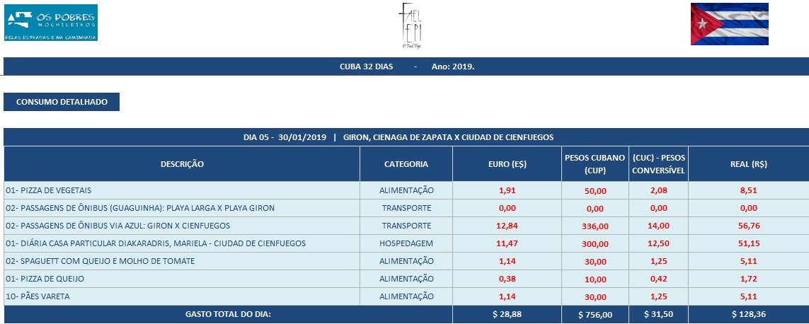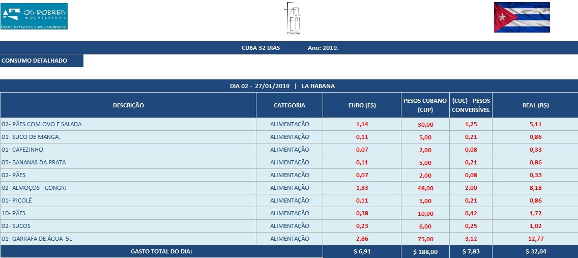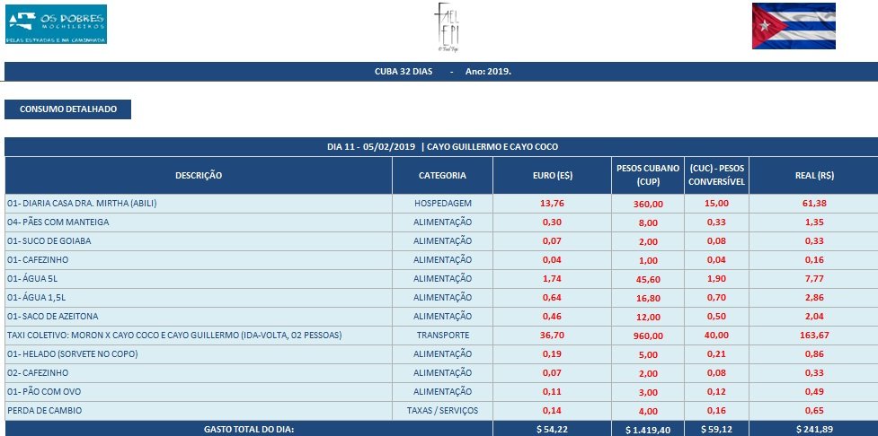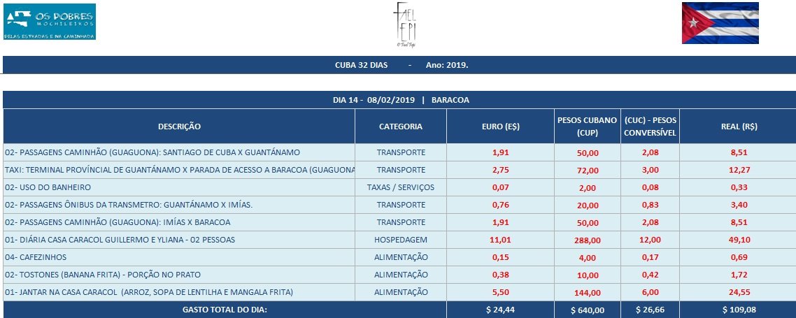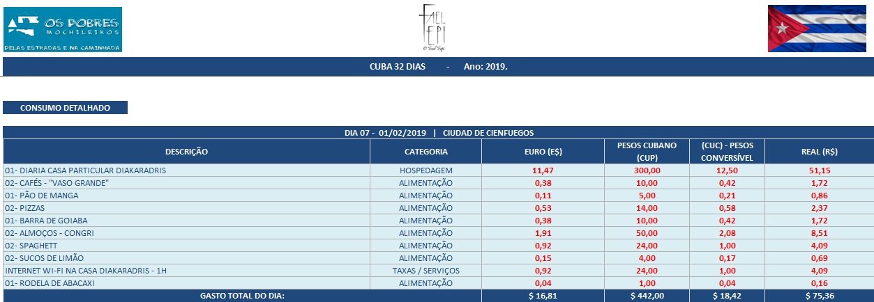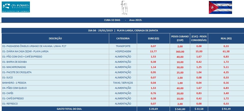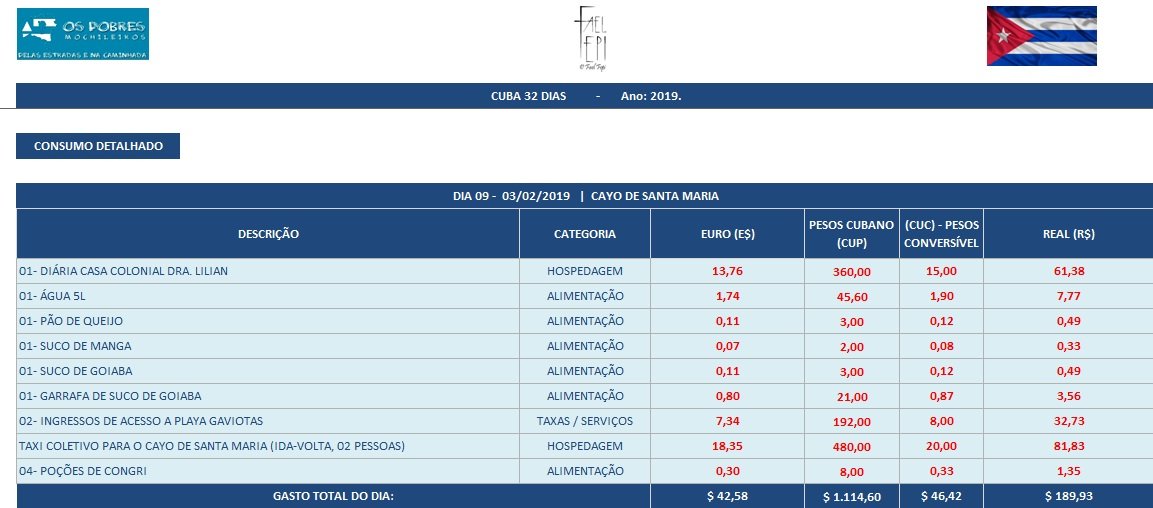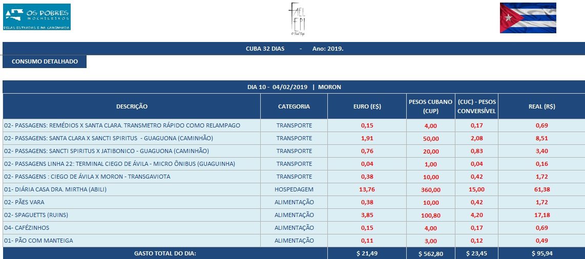 MOCHILÃO CUBA - DIA 01 AO DIA 16