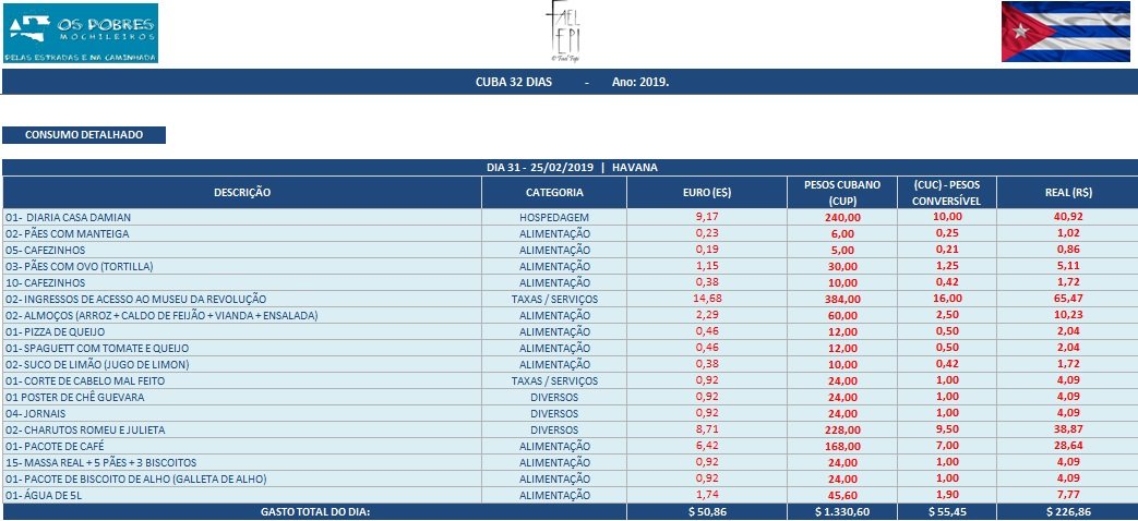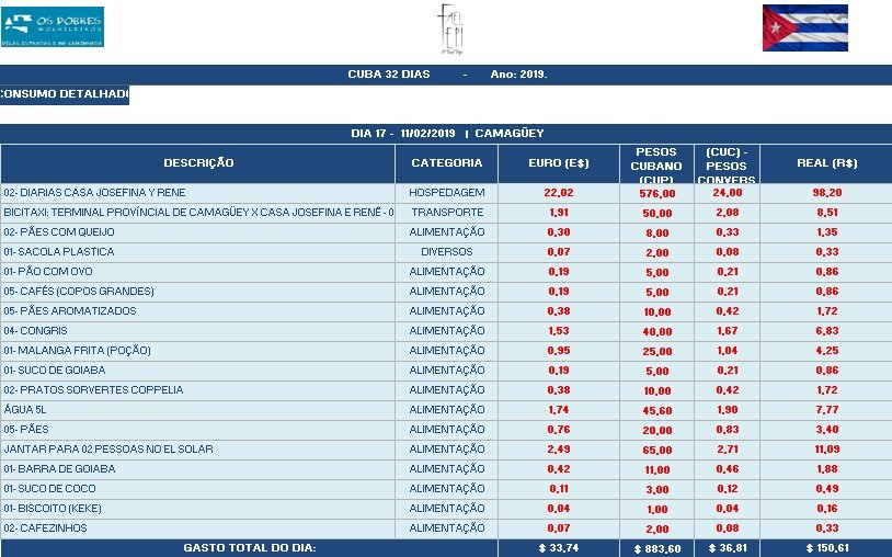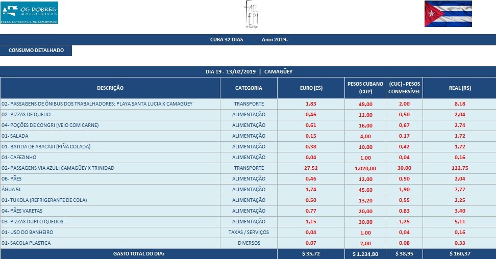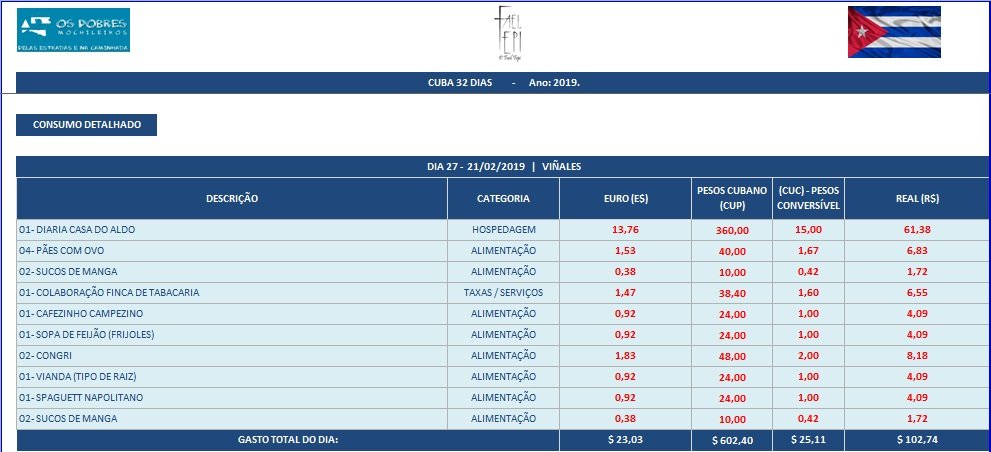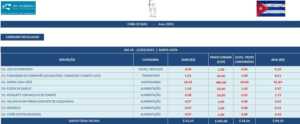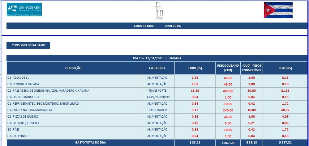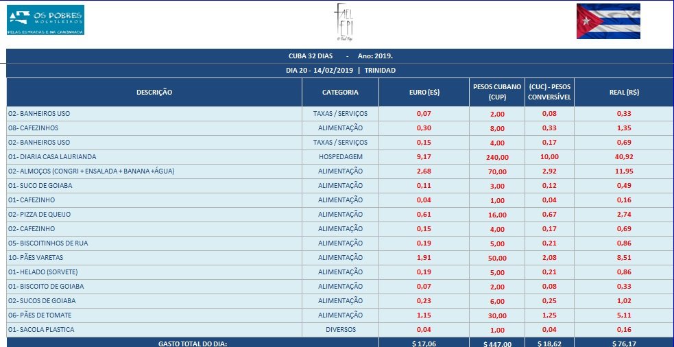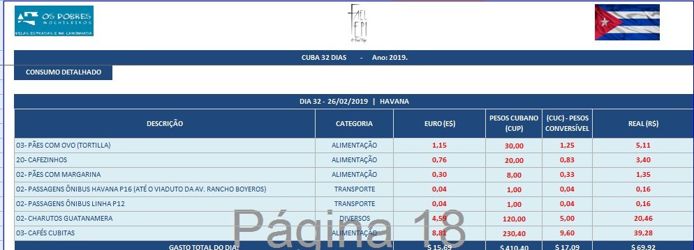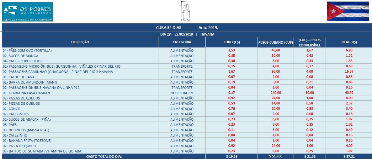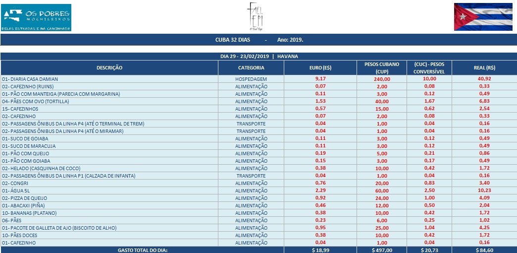 MOCHILÃO CUBA - DIA 17 AO DIA 32