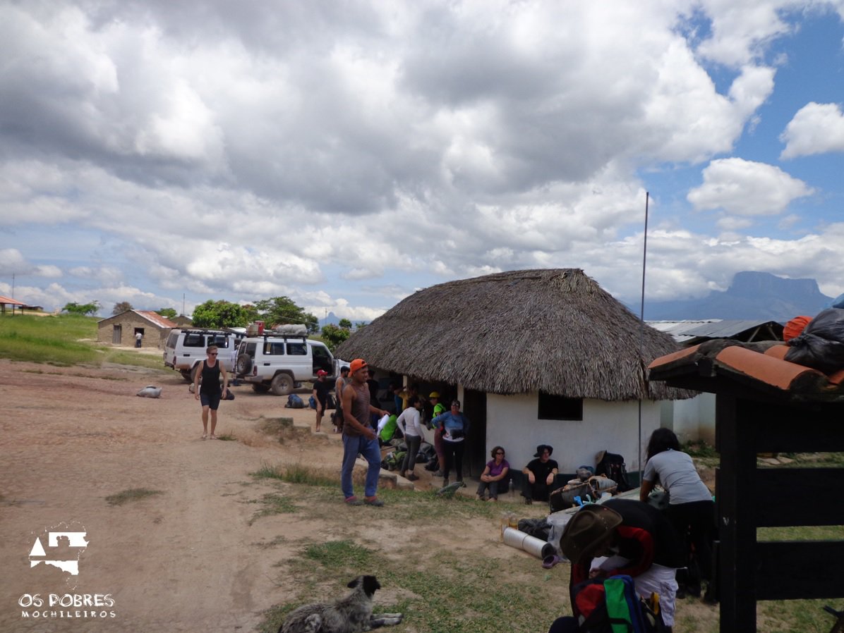 As 11:15 da manhã, o grupo realizou a inscrição e teve acesso a trilha. A “portaria” de acesso fica em uma comunidade de descendentes indígenas, ocupada com a construção de pequenas casas e um deposito, com o nome de Paraitepuy. Com vegetação característica de cerrado, o lugar é bastante simples, característicos de vilarejo, bem isolado. O sol castigava e não ventava, proporcionando o forte calor. O que chamou a atenção de Fael e Graziela foram os cachorros que estavam muito maltratados e famintos. As 11:40 da manhã o grupo inicia a caminhada no forte sol do cerrado venezuelano.