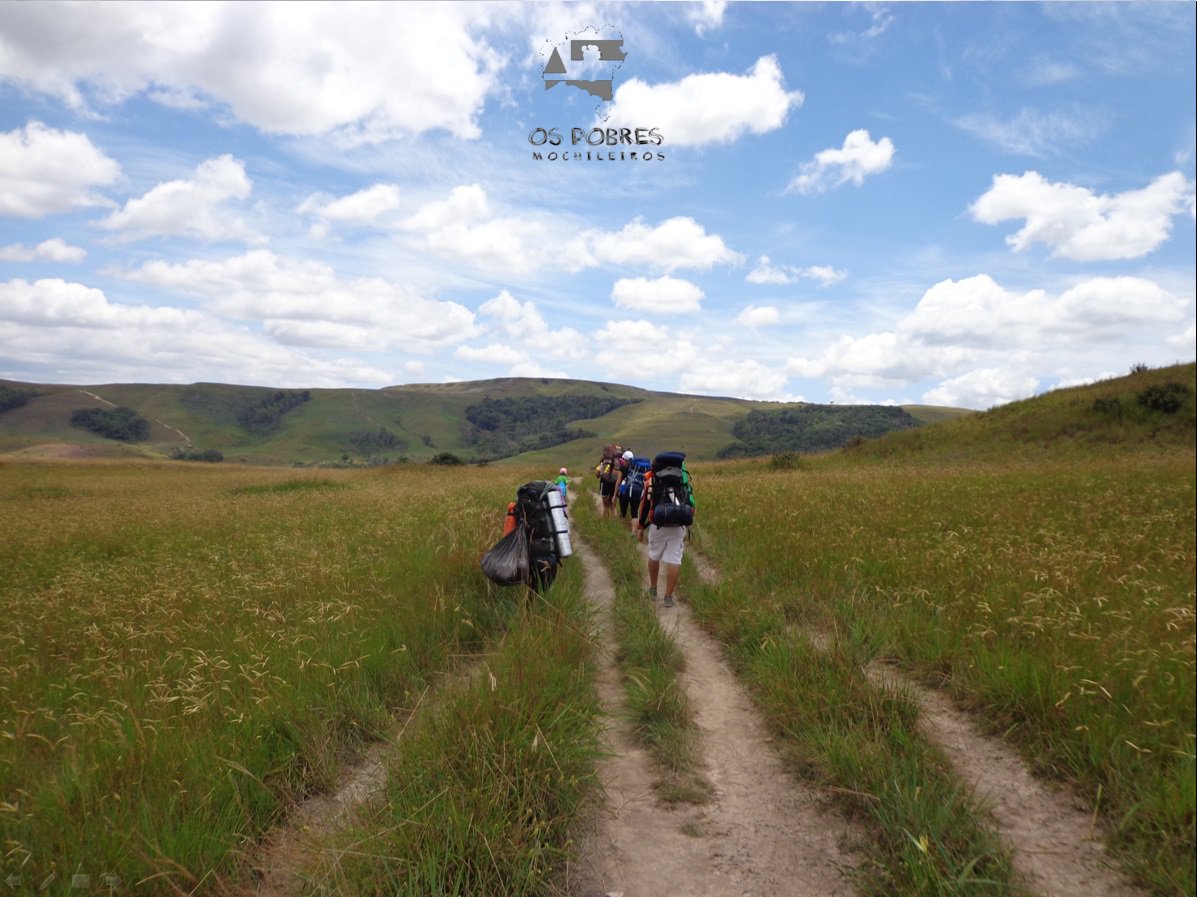 Trechos bem batidos e delimitados, sem muita dificuldade de visualização. Assim iniciou a caminhada na trilha oficial do Monte Roraima. Fael e Graziela receberam um lanche de Mellani, pois estava incluído no acordo que os mesmos fizeram. Os Venezuelanos tinham que fazer seus lanches por conta própria, pois o acerto foi diferente dos brasileiros.