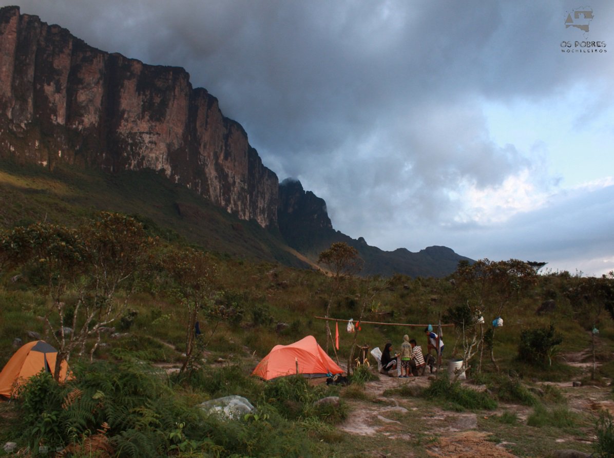 A paisagem é encantadora, atraindo os olhares dos trilheiros acampados. Destaque para os Montes kukenan e Roraima situados na grande planície do Parque Nacional Canaima. A vegetação chama a atenção pelo fato de não ser observada uma árvore, característica de pastagem.