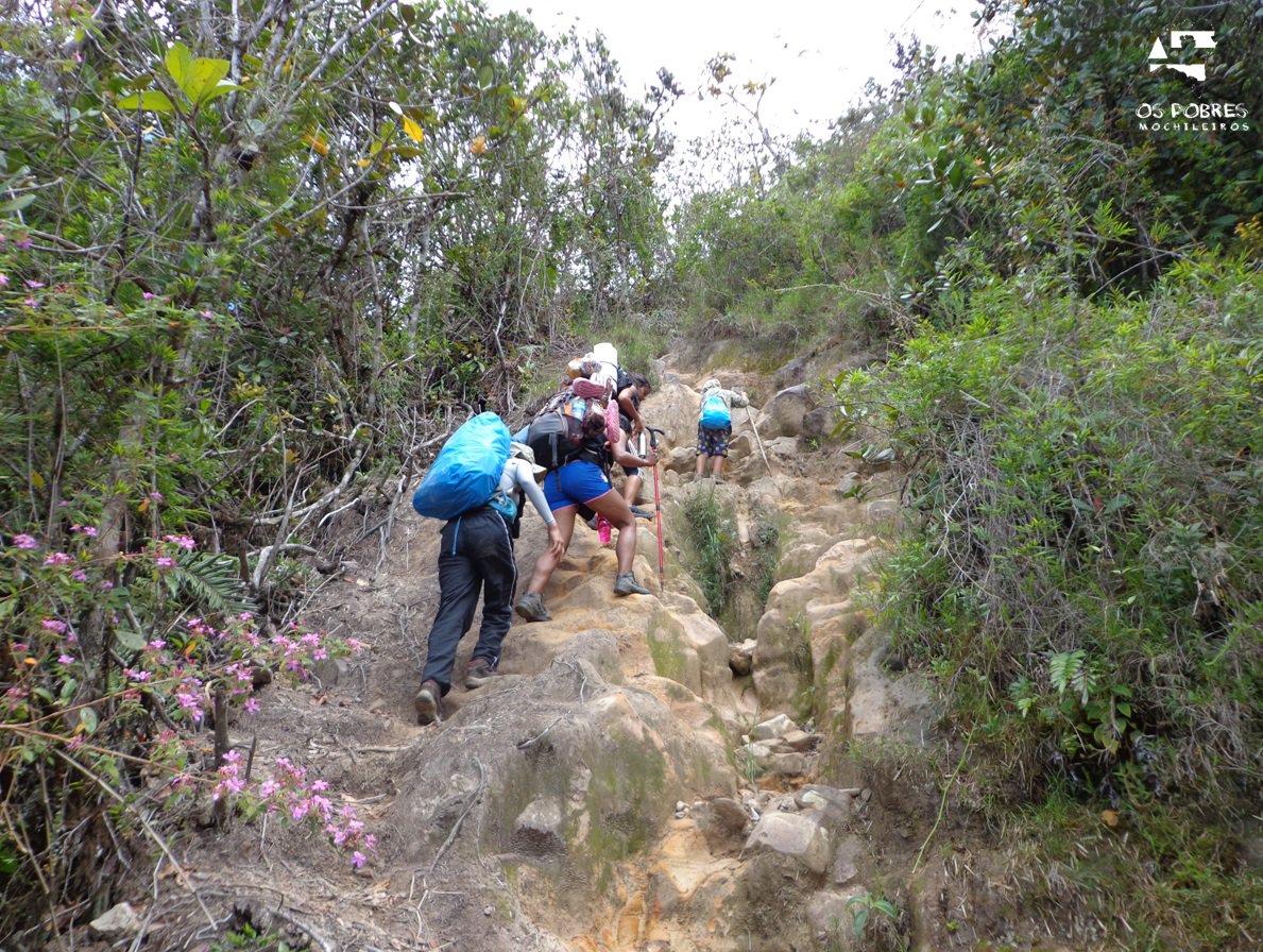 A trilha íngreme parecia interminável. Cada vez que "escalaminhavam" mais trechos acidentados apareciam. Após 45 minutos de subida se visualiza um belo mirante, servindo como ponto de descanso. Fael, Graziela, Mellani e Santi foram os primeiros a chegar e apreciar a paisagem, enquanto esperavam os carregadores Kliber e Oxcel, além do Álvaro, Oriana e Katherine que viam logo atrás.