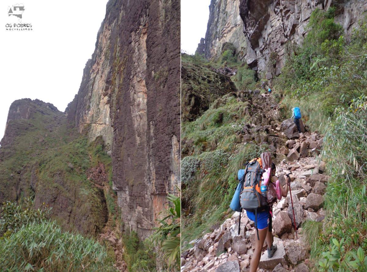 O caminho é bem batido sobre a superfície rochosa desgastadas pelas passadas de muitos trilheiros que visitam o Monte Roraima o ano inteiro. Totens e setas vermelhas eram observados como instrumento de orientação. De modo geral não é uma trilha confusa. Outro fator importante são os córregos observados nas margens da trilha, servindo como ponto para captação de água gelada e bem saborosa. Trechos alagados surgem no caminho devido as constantes precipitações nas madrugadas acima do Tepui e as massas de ar úmida. Essa poção do Monte Roraima já está no território da Guiana, inclusive o ponto mais alto. O verdadeiro Cume do Monte Roraima fica localizado no território Guianês.