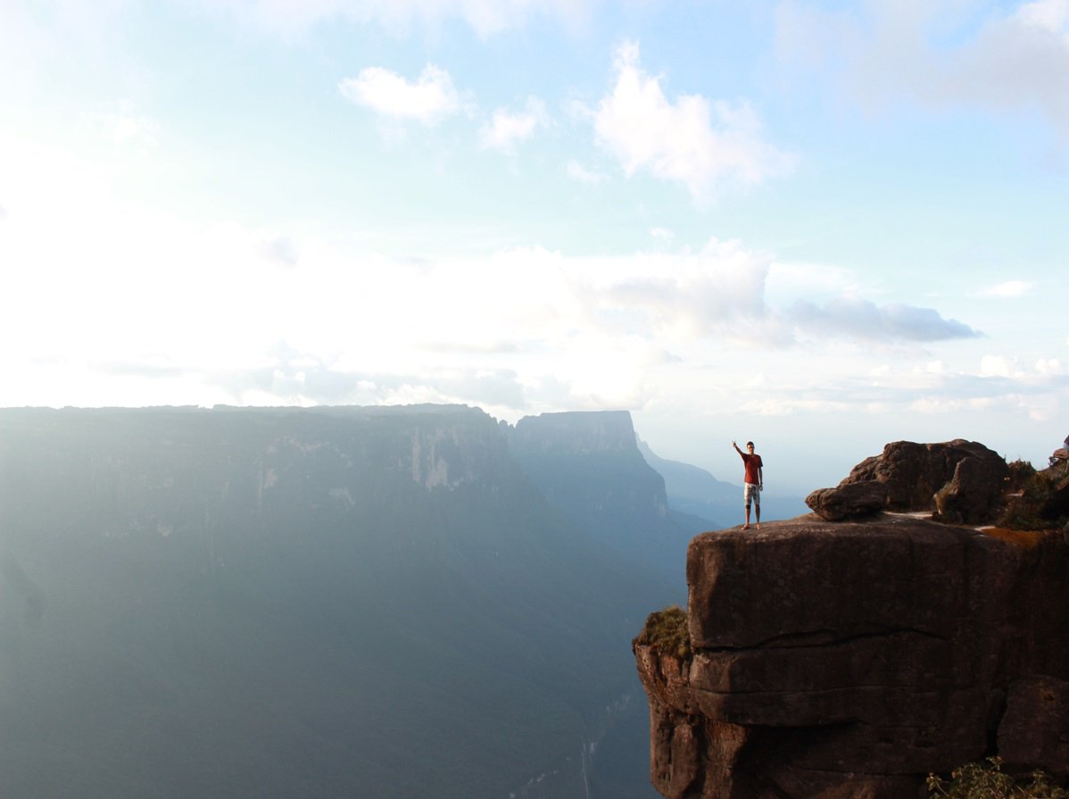 Imagem 28 - Kliber Perez com a bandeira da Venezuela na La Proa. Trilha do Monte Roraima, Guiana. Ano: 2016.