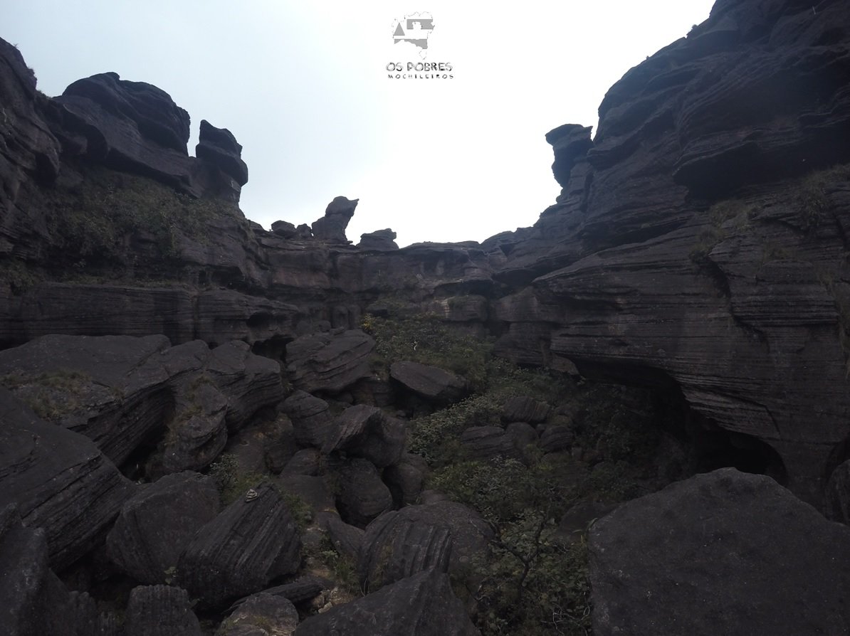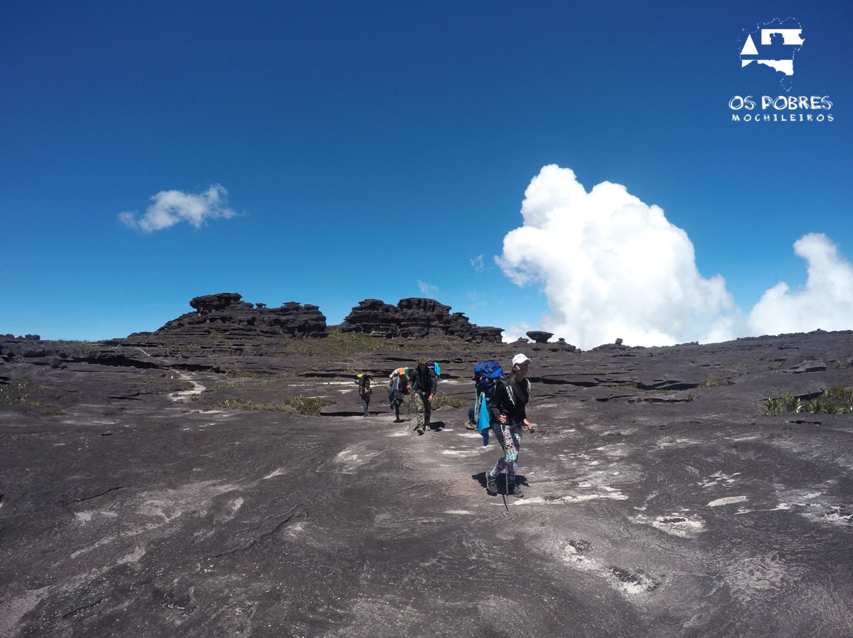 Na Superfície do Monte Roraima surgem novas formas e paisagens. Grandes rochas, muitas delas de tons escuros, algumas tocas e pequenas vegetações compõe a base do tepui. A trilha segue batida, em lajedo, mas bem delimitada e desgastada devido à grande quantidade de "trilheiros" que visitam o Monte Roraima.
