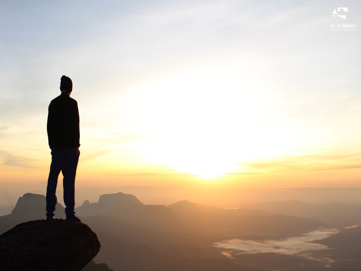 Manhã nublada e de fortes ventos. Fael e Graziela foram os primeiros a se levantar e enfrentar as baixas temperaturas no Monte Roraima. As 05:25 da manhã o dia estava claro e com muitas nuvens, que por sinal estavam próximas, passando na “porta” dos hotéis.