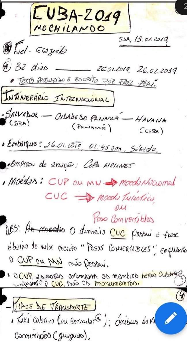 Resumo do meu planejamento, servindo como um referencial de informações para um mochilao econômico em Cuba.