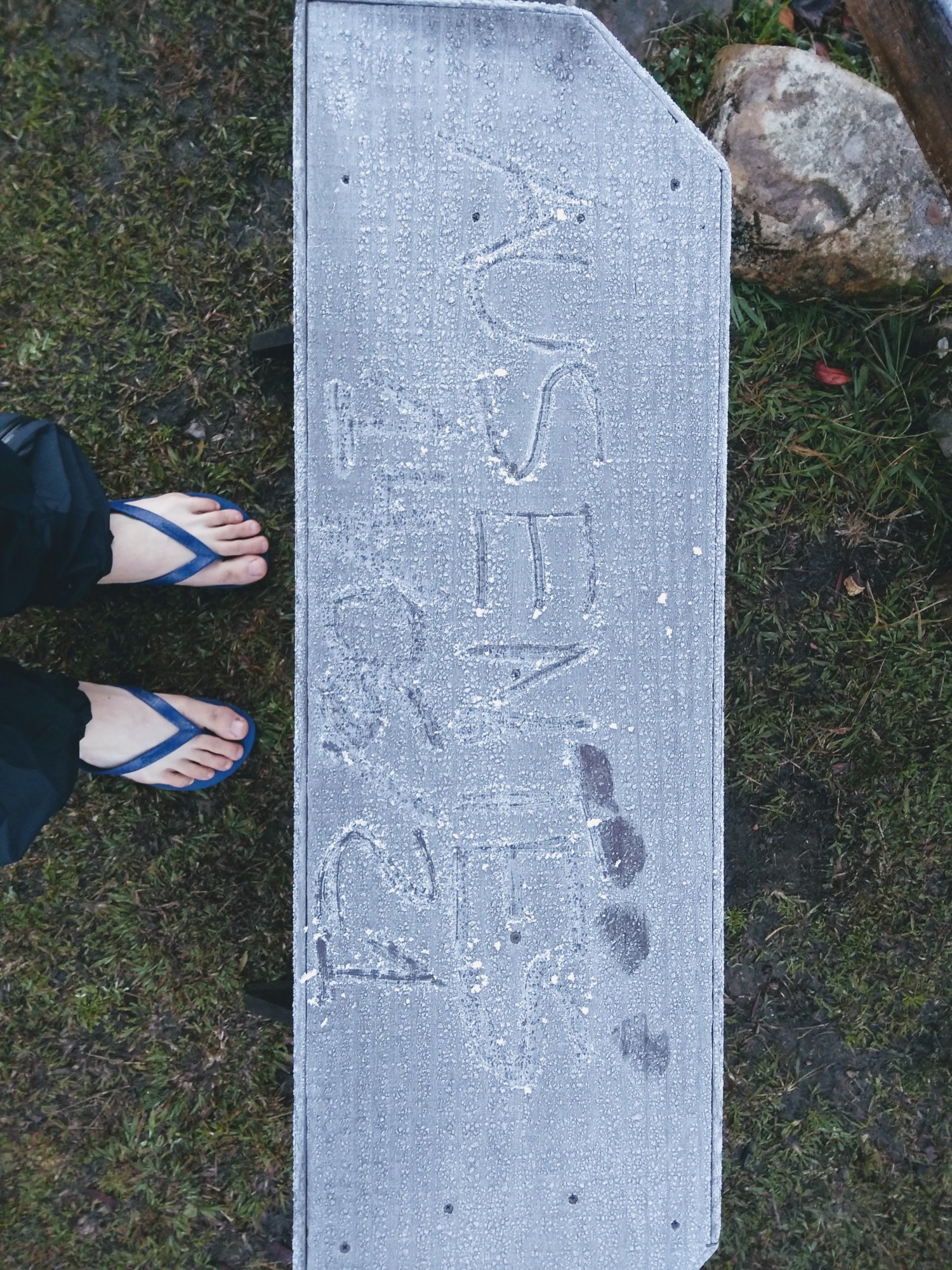 Não deu outra, as 8:00h quando decido levantar com os primeiros raios de sol batendo na barraca está uma BAITA geada. Tiro o teto da barraca para descongelar e secar e não molhar as coisas lá dentro. Na sequência vou tomar um café e dar uma lagarteada no sol.