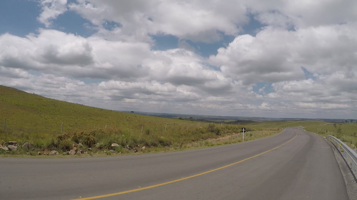O trecho de asfalto cai como uma benção para minhas pernas já cansadas com 50-60km percorridos. A velocidade aumenta e tudo fica mais fácil, pena que dura pouco tempo. Quando o asfalto acaba novamente, tenho mais 8km sofridos de estrada de chão até o meu destino do dia. Esses 8km foram cruéis, estrada muito ruim, muita pedra solta, o ritmo nas descidas era mais lento que nas subidas. Depois de mais de 1h de esforço e somando 74km pedalados, chego no famoso "Bodegão", fico muito feliz, mas dura poucos minutos. Enquanto tomo uma coca gelada e especulo a proprietária sobre a possibilidade de pernoite, ela com cara de poucos amigos e com menos palavras ainda diz que tem um compromisso em Lages e não vai poder me receber, sugerindo que eu vá até a próxima localidade e procure a Familia Xavier para encontrar pouso. Lá vou eu, encarar aqueles malditos 8km pela estrada horrível. Com as pernas cansadas tento me distrair com a beleza exuberante dos campos da coxilha, no caminho dou de cara com a subida mais forte do dia, o 1° empurra bike da viagem estava oficializado, mas falta pouco, mais em frente chego na localidade de São Jorge, com 82km, nunca havia pedalado tanto assim.