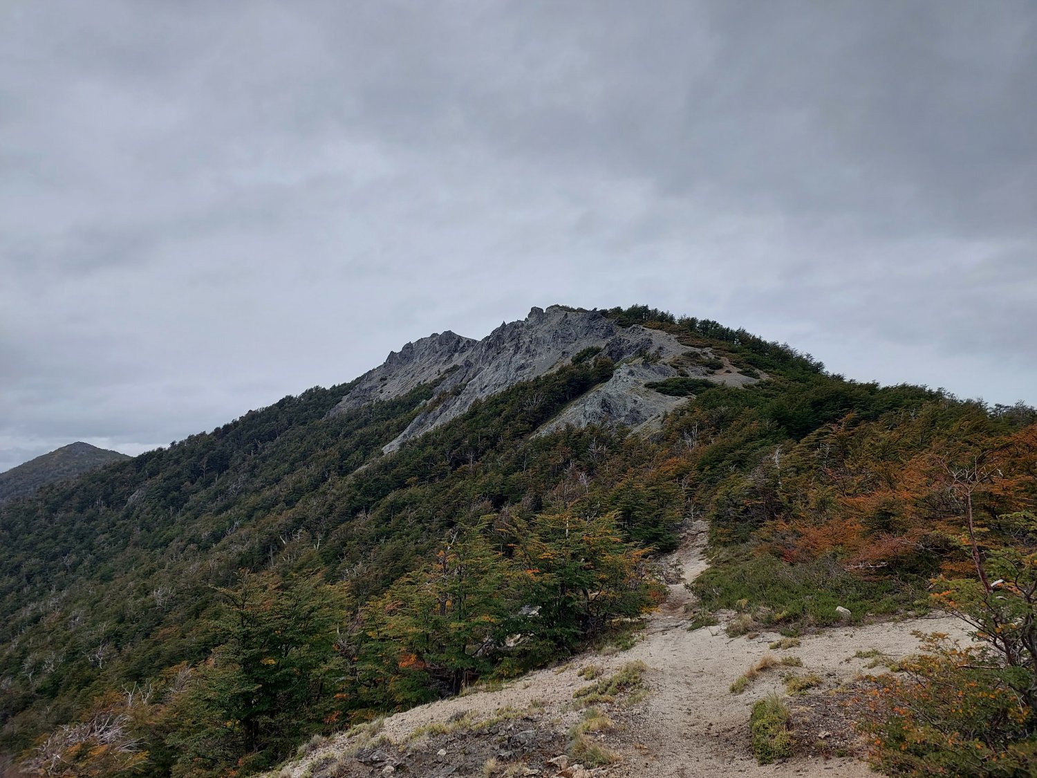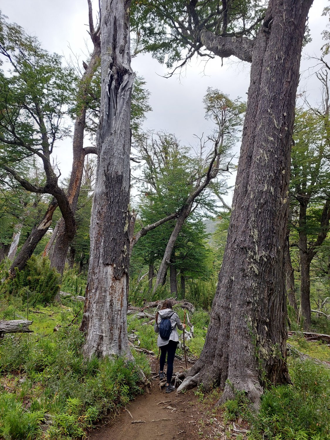 Noutro dia nos aventuramos pela Colonia Suiza, fazendo a trilha do Cerro Goye. O racional foi sempre ir conhecendo os setores onde estão localizados os inícios das trilhas e fazer uma evolução gradual na dificuldade delas. O Cerro Goye pode ser considerada uma trilha moderada/dificil, dependendo principalmente do nivel de preparo físico e no sentido em que ela é percorrida. Nós fizemos o tradicional, partindo na mesma direção que leva para a trilha do Refugio Jakob, que iriamos fazer outro dia, e tomamos a bifurcação para seguir pelo bosque até o topo do Goye. Um percurso sem muitos atrativos a não ser as florestas, mas de fácil deslocamento. Muito proximo ao cume o cenário muda, saímos da linha das árvores e o terreno fica pedregoso, andamos pelo ''filo'' da montanha até chegar em seu ponto mais alto e termos a vista para vários lagos. O dia nublado e ventoso atrapalhou um pouco o alcançe da visão, mas colocou um desafio extra e muito legal na trilha. Deste ponto pode-se optar por fazer o caminho de volta ou descer a montanha, fazendo uma espécie de looping, descidas bem îngremes e pedregosas. Nos relatos que ví na internet havia de tudo, pessoas que acharam horrível e outras boas avaliações. Pagamos para ver e foi muito divertido. Uma descida bastante técnica e travada, mas com um bom nível de sinalização e um ''Q'' de aventura. Essa trilha se pagou pelo tempo que caminhamos no "filo" e com certeza pela sua descida.