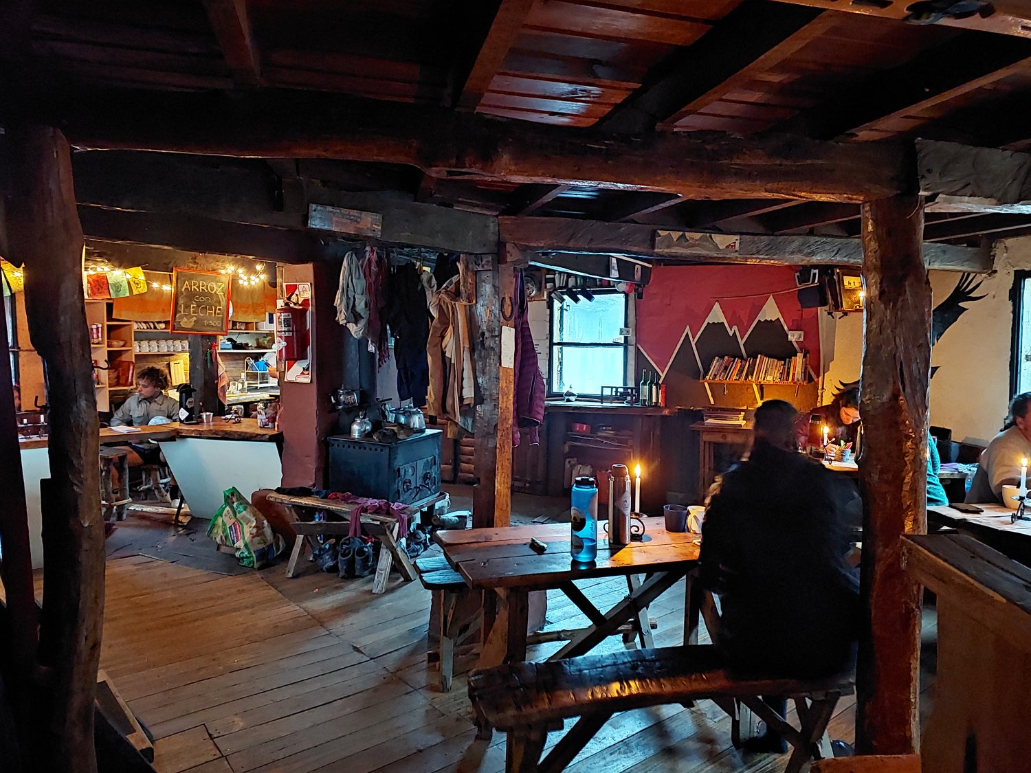 No Refugio Mafredo Segre a experiência é mais roots, desde o caminho que foi abaixo de chuva e muito frio e vento no topo da montanha até as acomodações, staff e refeições. O refugio é bastante pequeno, com aquela decoração sem ser decoração, com uma salamandra abarrotada de roupas molhadas no centro do único comodo comum do refúgio. O banheiro é bem mais simples mas funciona e o espaço de dormir também, um grande quarto com vários colchões espalhados, basta escolher cedo o seu (na temporada deve lotar) e já deixar seu saco de dormir. A janta foi uma pizza, simples mas bastante saborosa. Ainda quero conhecer os outros refúgios, mas acredito que esse ainda preserva a essência dos primeiros exploradores, cumpre seu papel brilhantemente (servir de abrigo, descanso e esquentar) e ainda por cima tem uma visão magnifica da Laguna Negra. Com um pouco mais de empenho pode-se subir outro Cerro nas proximidades e ter uma visão para o Cerro Tronador e outras Lagunas encravadas nas montanhas. Faltam adjetivos para descrever a visão do Cerro Tronador, rí sozinho por alguns minutos. Ainda nesse refúgio fizemos boas amizades e tivemos boas conversas, algo possibilitado pelo estilo do abrigo, outro ponto bastante positivo.