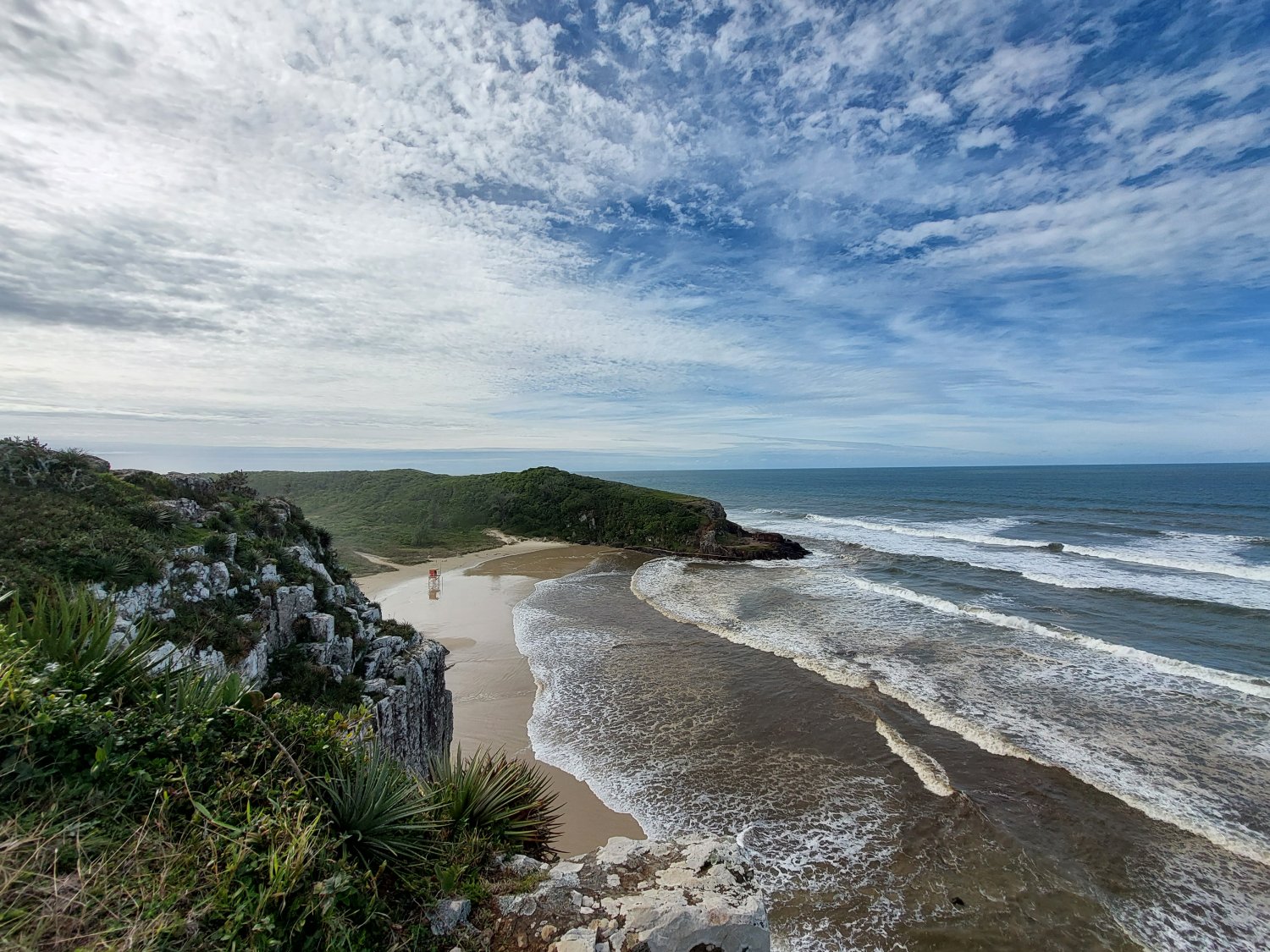 Seguimos de Porto Alegre para Torres, conhecer as falésias do Morro da Guarita, já estava na minha lista fazia alguns anos, era hora de tirar do papel. Pegamos um Airbnb muito próximo da entrada do parque, o 1° dia que fomos caminhar por lá e pela praia ao lado estava ventando MUITO, então não conseguimos aproveitar tanto. Andamos por outros pontos turisticos, os molhes, o morro da antena com uma visão quase 360° da cidade e pelas belas ruas largas da cidade. No outro dia cedo, já com sol e tempo bom, aproveitei para correr pelas falésias e praias enquanto a Mariana caminhava. Passamos toda a manhã por lá e conseguimos ver com mais detalhes tudo, desde os inúmeros pescadores com diferentes sortes, o sol refletindo nos paredões e a falta de lixeiros e incontáveis bitucas de cigarro no chão.