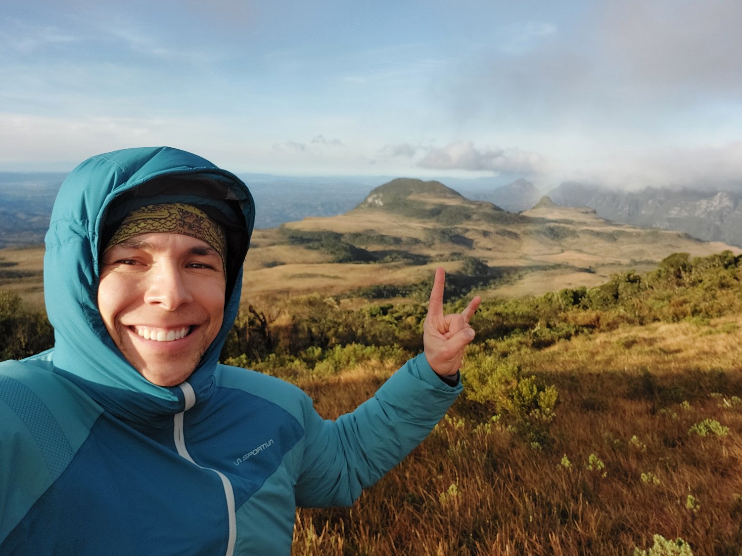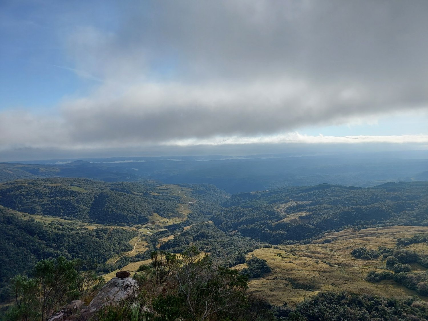 A madrugada foi osso! muito vento, chuva. Precisei levantar algumas vezes durante a noite para verificar se os Specs da barraca estavam bem firmes e se está tudo certo. Felizmente sim! Mas a noite foi péssima de sono. No outro dia de manhã a tão esperada e grata surpresa. Com o vento forte que fazia, as nuvens se dissipam, o sol aparece e é possível ter a vista de todo o Canion Espraiado do alto, sensacional !!!