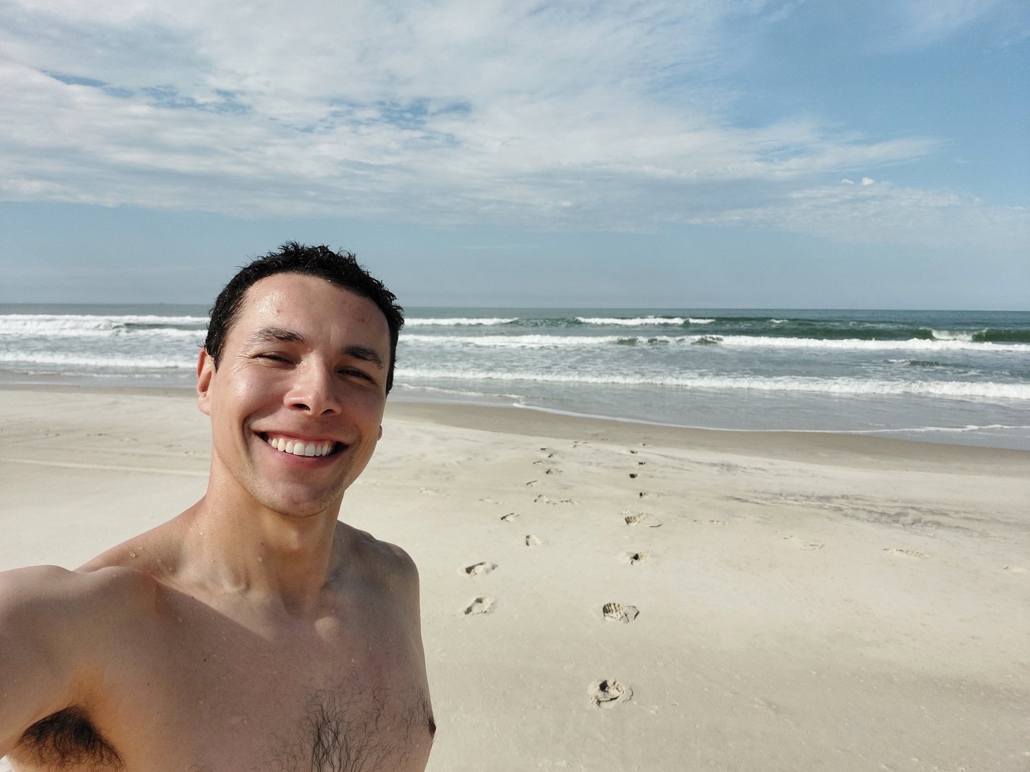 Minha vontade em ir para a Praia do Rosa era de poder fazer todas as trilhas e com sorte pegar um dia de sol e mergulhar. Quando estava planejando a viagem procurei por hospedagens, baratas obviamente, encontrei uma com um relação custo x beneficio interessante (inocente). Quando cheguei no chalé no período da tarde, a primeira impressão que tive foi ruim. Mas como não desisto fácil, entrei na casa para ver, depois de varrer 3x pensei que daria para descer as coisas do carro. Troquei de roupa e fui fazer a trilha da praia do Ouvidor, a casa ficava uns 500m da praia. Fiquei as proximas 2h caminhando e pensando o que deveria fazer, se ficava na casa ou se ia embora para outro lugar. Quando voltei, estava assistindo um pouco de TV e a luz caiu. Foi a gota d'agua. Mandei mensagem para o proprietário dizendo que o anúncio não se parecia nada com a realidade, falei que não ficaria de jeito nenhum na casa e que gostaria de resolver a situação amigavelmente. Felizmente deu certo. Mas até fazer todos os tramites da plataforma ficou tarde, tive que acabar dormindo naquela espelunca mesmo. No outro dia cedo coloquei as coisas no carro e sai caminhar, esperando a hora para conseguir fazer o checkin na outra hospedagem.