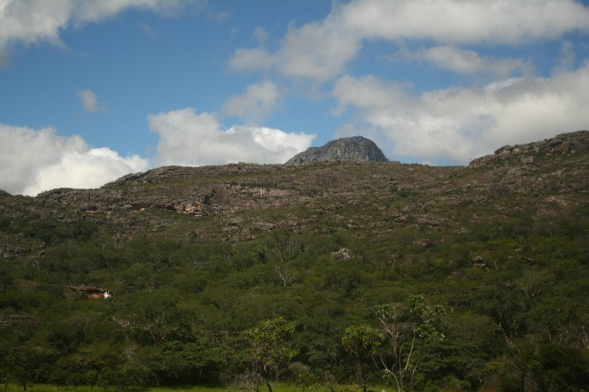 Continuando a caminhada agora com a temperatura do corpo mais amena, percorremos um trecho por vale muito bonito de onde avistávamos o Pico do Itambé e uma das cachoeiras que percorremos pelo leito do rio. Não demorou muito já estávamos na Cachoeira Ponte de Pedra, uma queda pequena com poço também pequeno, mas com um poço, acima da cachoeira, muito interessante, parecia estas piscinas modernas com borda sem fim.