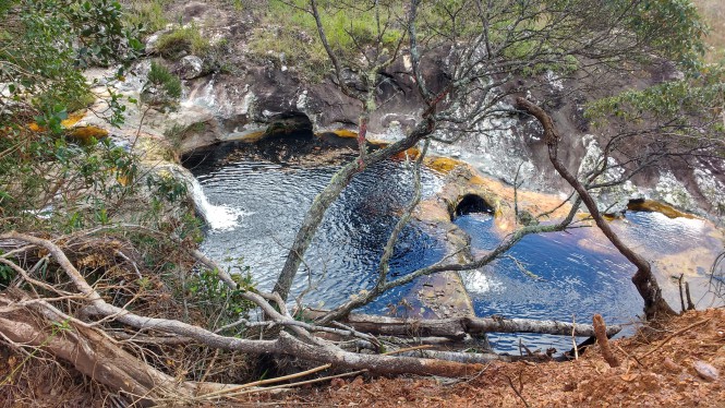 Acordamos no outro dia, tomamos café da manhã calmamente e seguimos às 07:56 h, passamos pela entrada que dá acesso ao PERP mas seguimos direto, logo já nos encontrávamos na ponte sobre o Córrego Soberbo, com bastante água. Seguimos margeando este córrego, passamos próximo a um quedinha d’água pequena mas muito boa, como o tempo estava frio nem cogitei a hipótese de entrar na água.